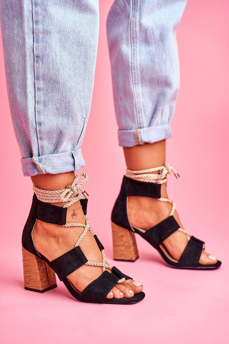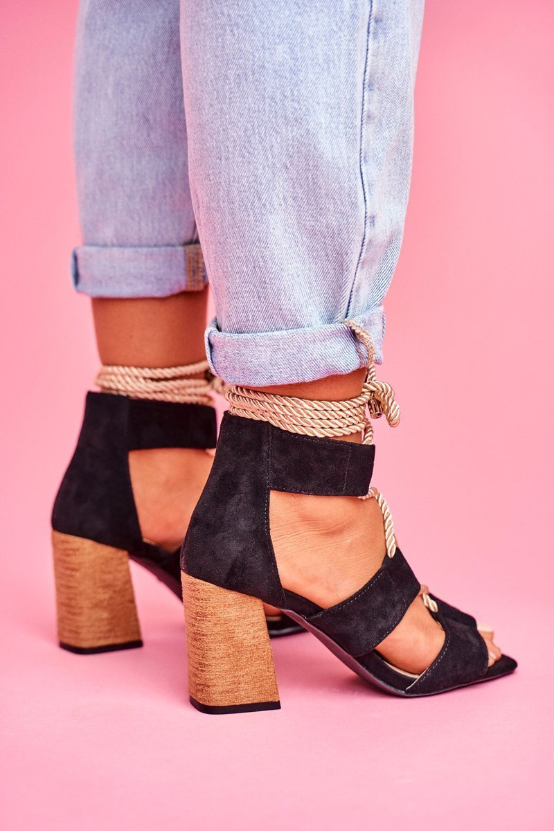 Dámské Sandály Na Podpatku Šněrované Semišové Černé Amore