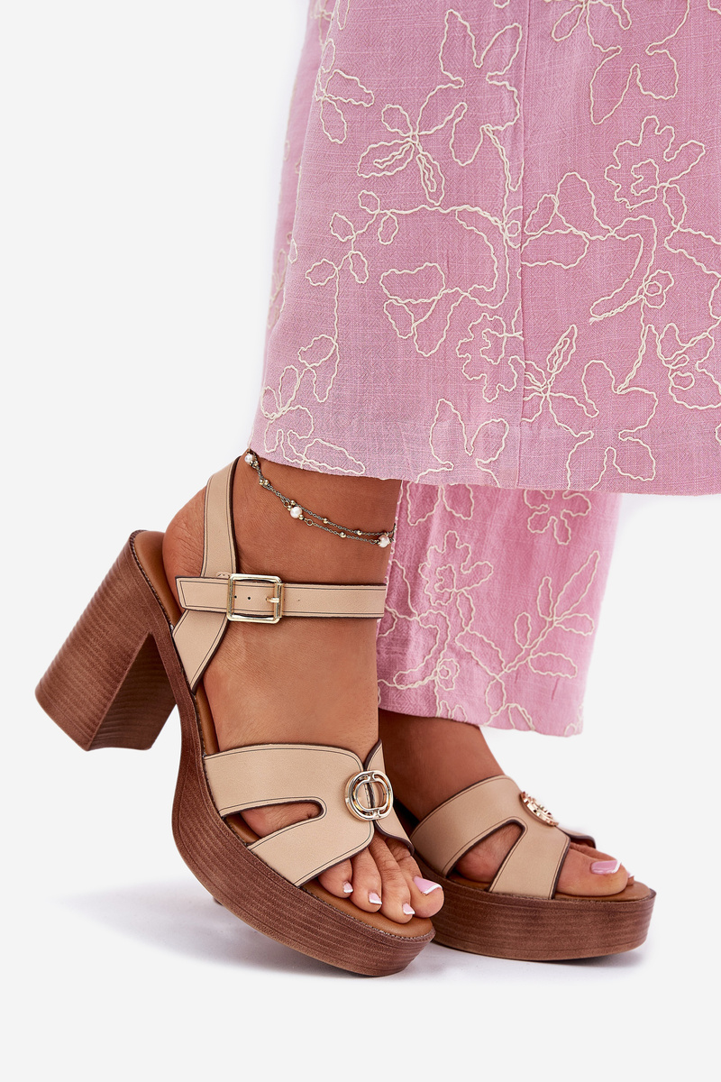 Dámské Sandály Na Podpatku Zlatá Ozdoba Béžové Nusorilis