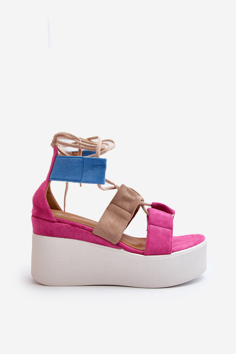 Dámské sandály s tlustou platformou a korkovou podrážkou. Vyrobené z ekologického semiše. Tento model má moderní šněrování kolem kotníku. Lehce profilovaná stélka z ekologické kůže zajistí pohodlí během nošení. Tento střih lze kombinovat s mnoha letními šaty, sukněmi a kalhotami! Při výběru velikosti se řiďte tabulkou velikostí.