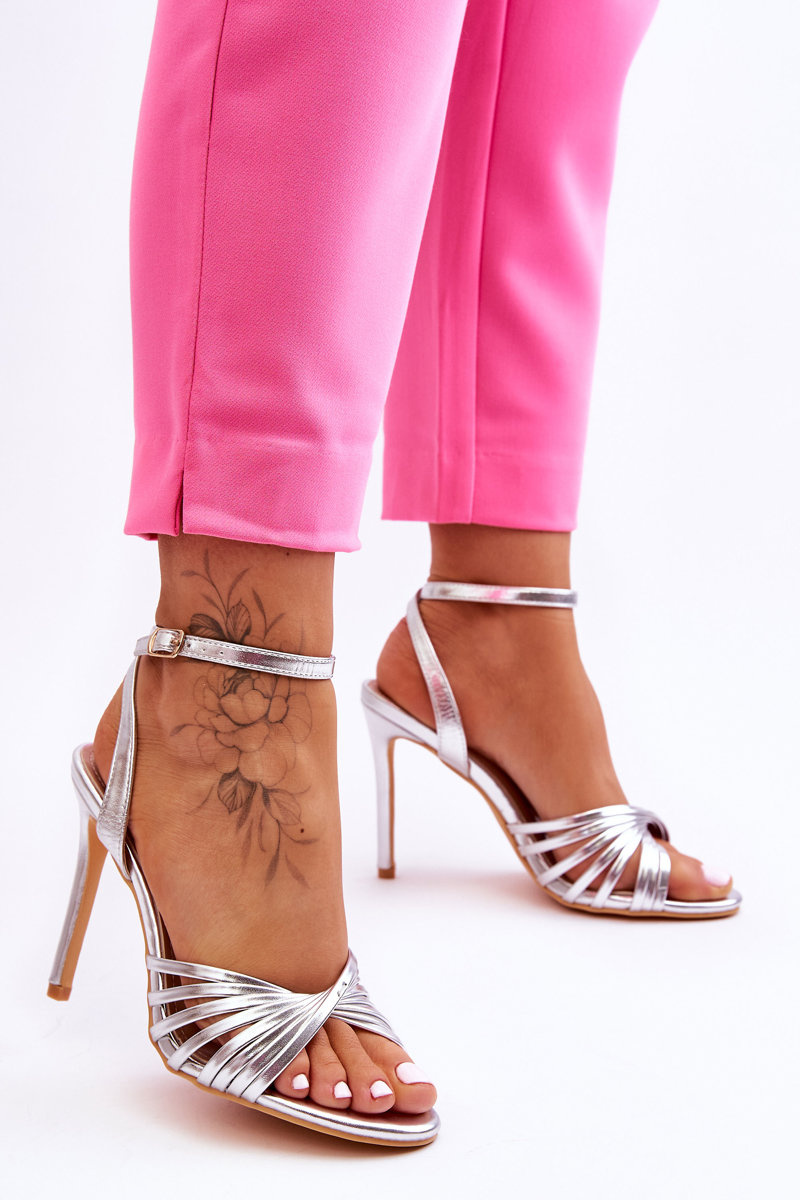 Dámské sandály na vysokém podpatku stříbrne My Darling