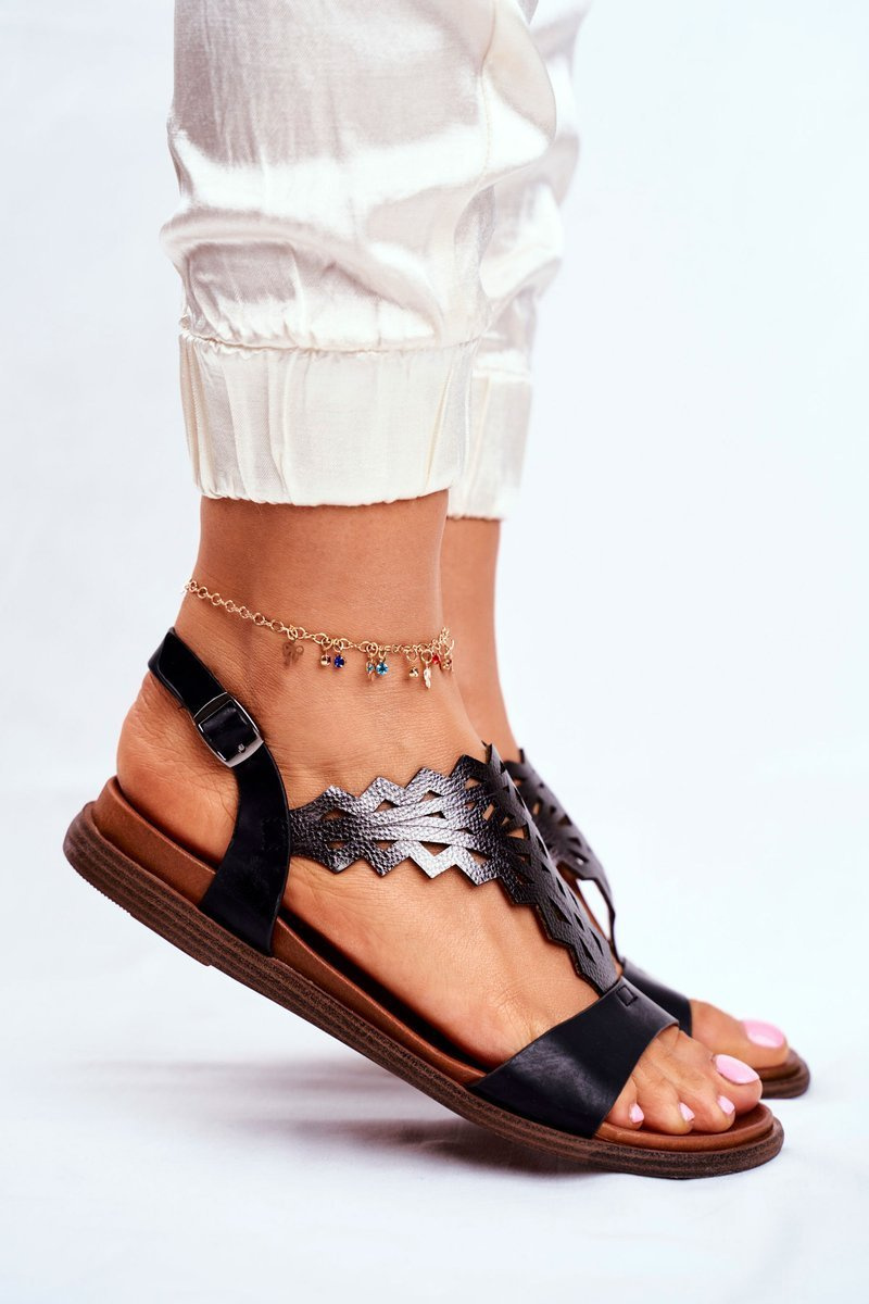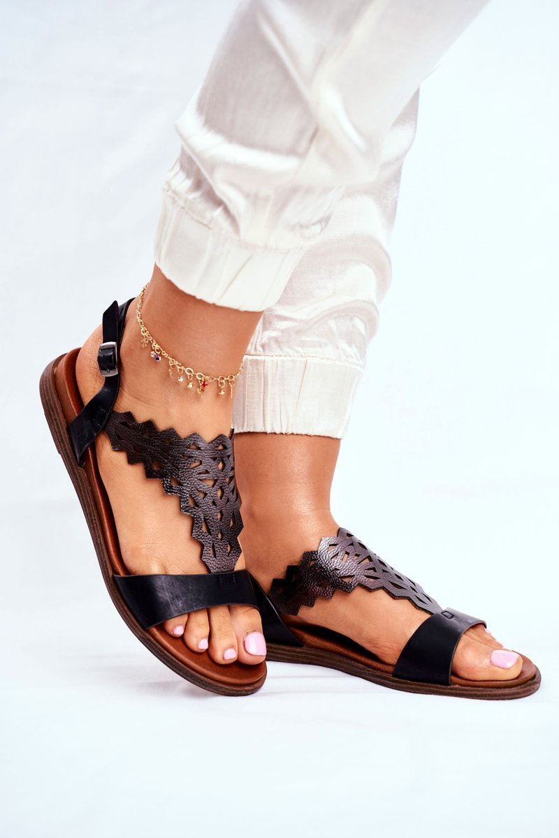Dámské Sandály Ploché Sergio Leone Černé SK035