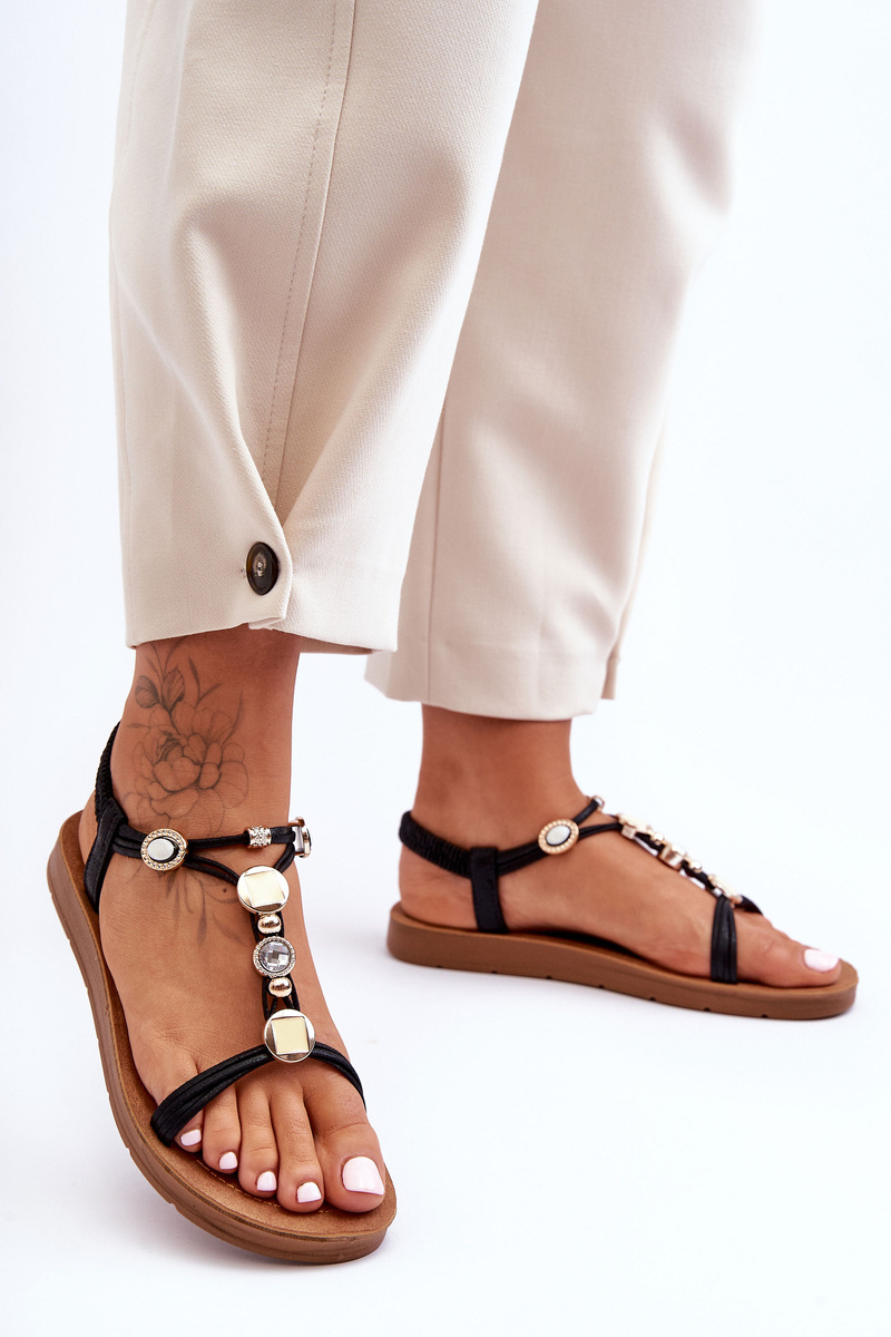Dámské Sandály s Ozdobami Černé Kushi