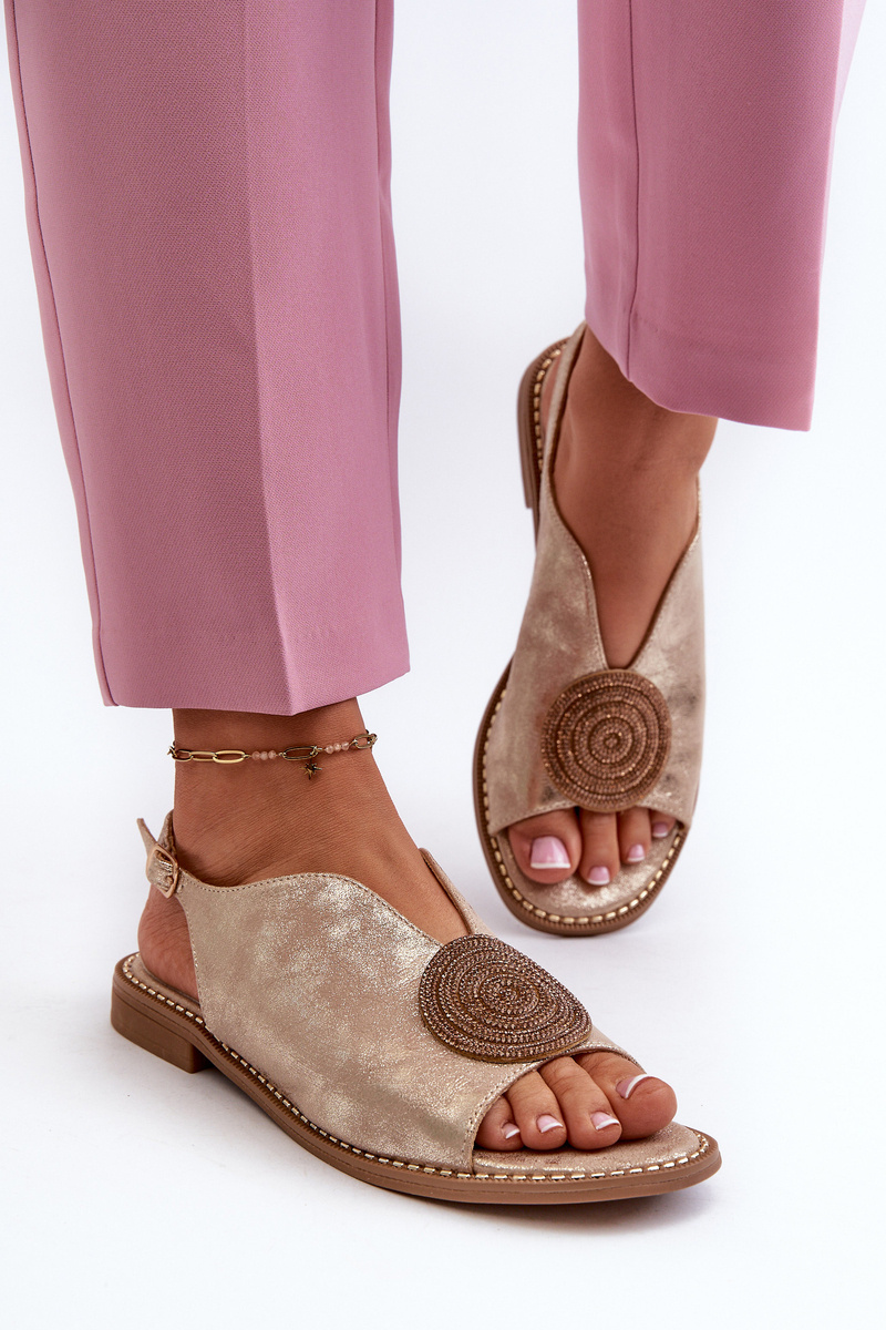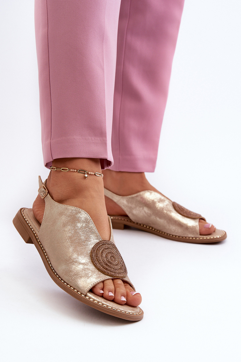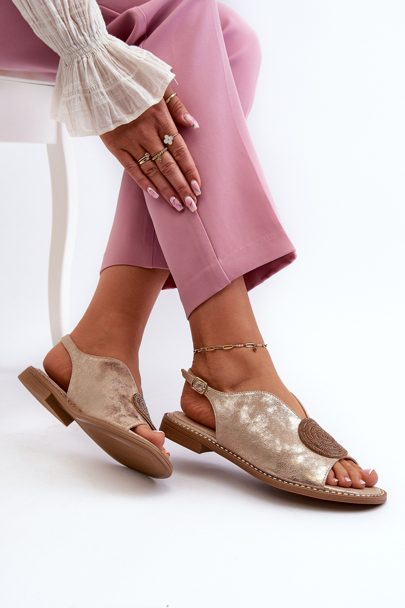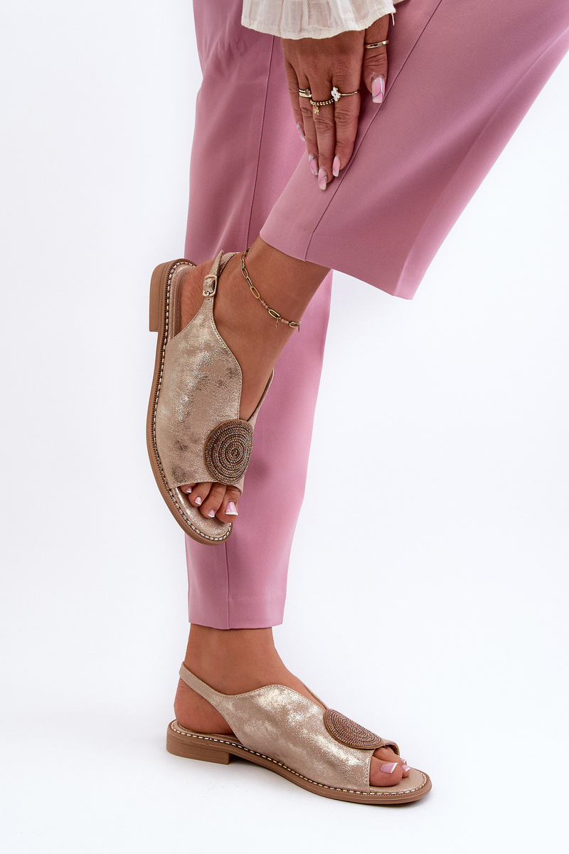 Dámské sandály s ozdobou na ploché podrážce S.Barski KV24-057 Zlaté
