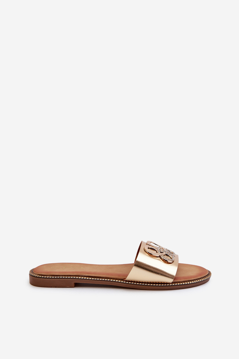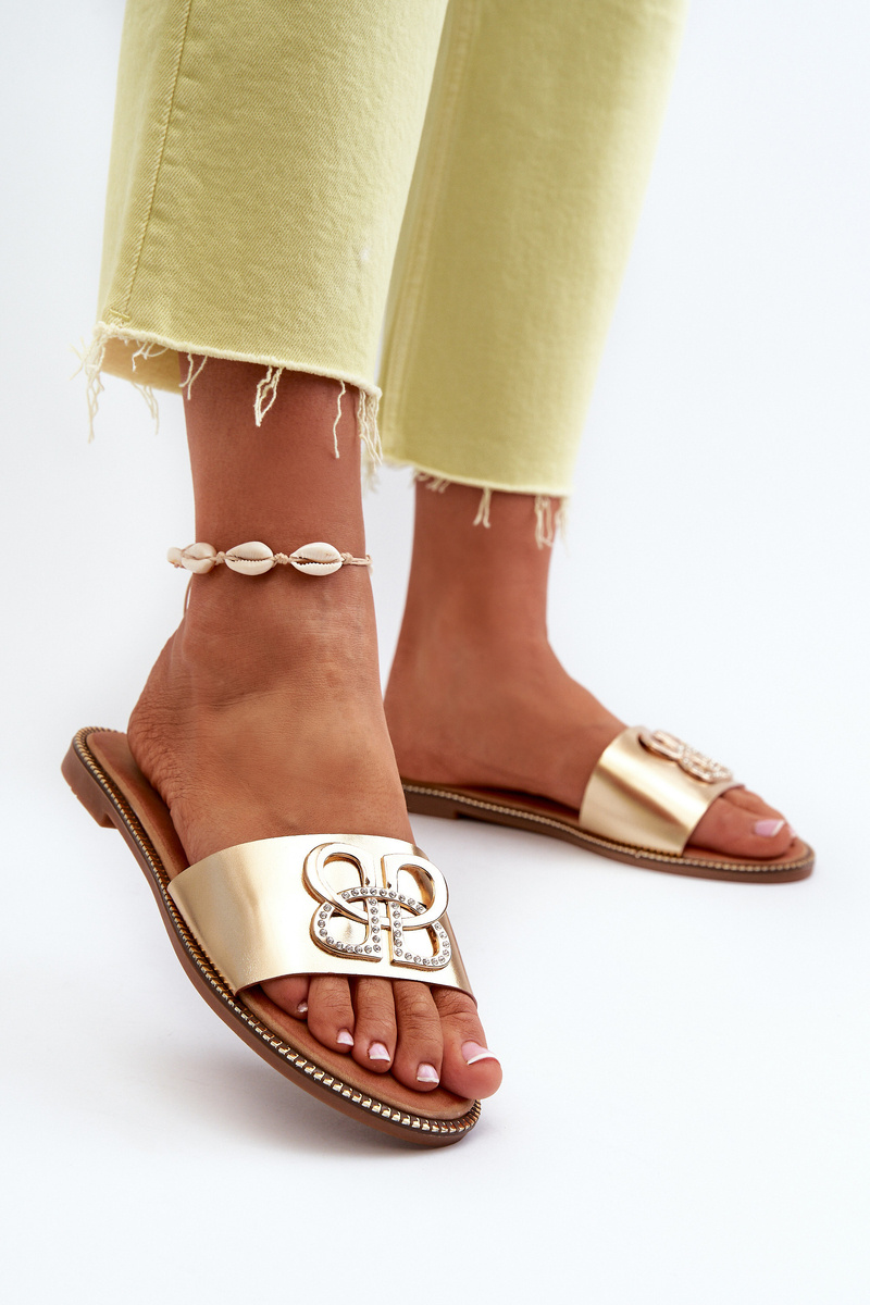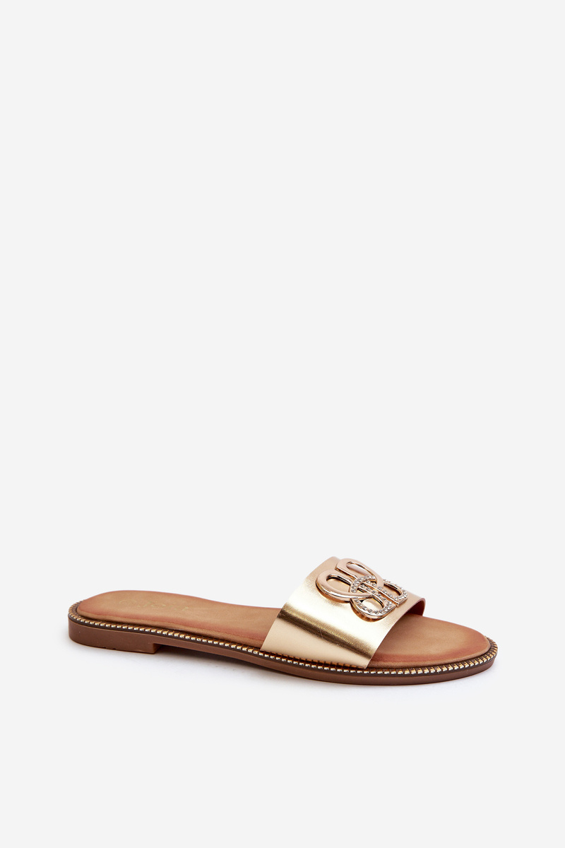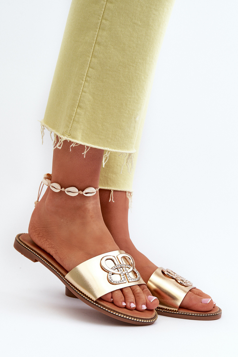 Dámské sandály S Ozdobou Z Ekokože Na Ploché Podrážce Zlaté Sadria