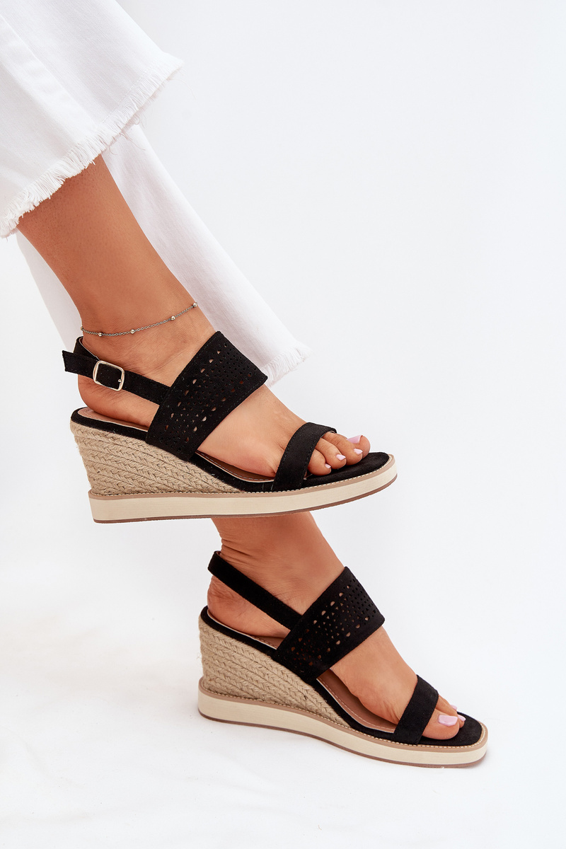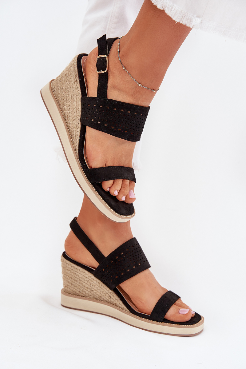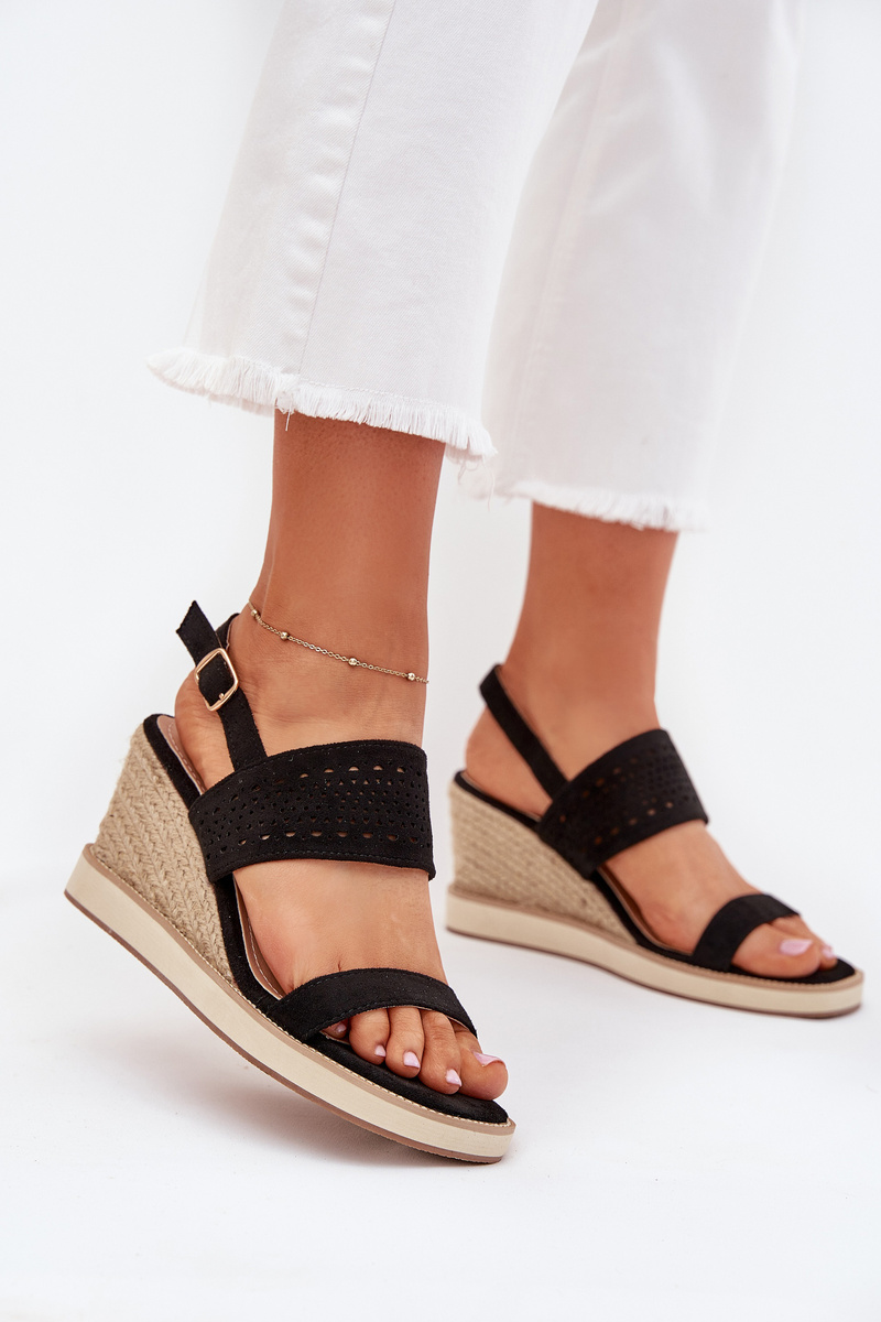 Dámské sandály z eko semiše, usazené na platformě s pleteninou, jsou vynikající volbou na letní dny. Zapínají se na sponu s nastavitelným páskem, což zajišťuje pohodlí a dokonalé přizpůsobení. Vzdušný vzor na pásku jim dodává lehkost a jemnost. Ideální k letním šatům a kalhotám, kombinují stylový vzhled s pohodlím, čímž vytvářejí dokonalou volbu na teplé dny. Při výběru velikosti se řiďte tabulkou velikostí.