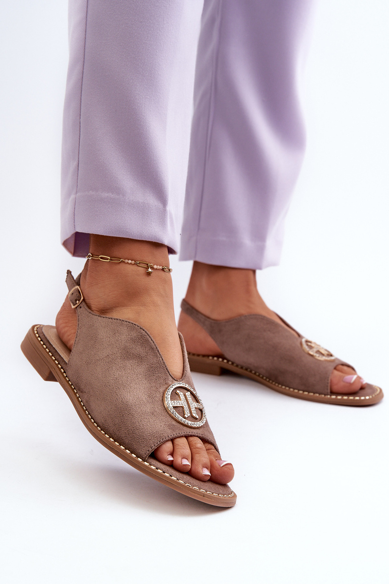 Dámské sandály s zlatým ozdobou eko semišové S.Barski KV27-059 hnědé