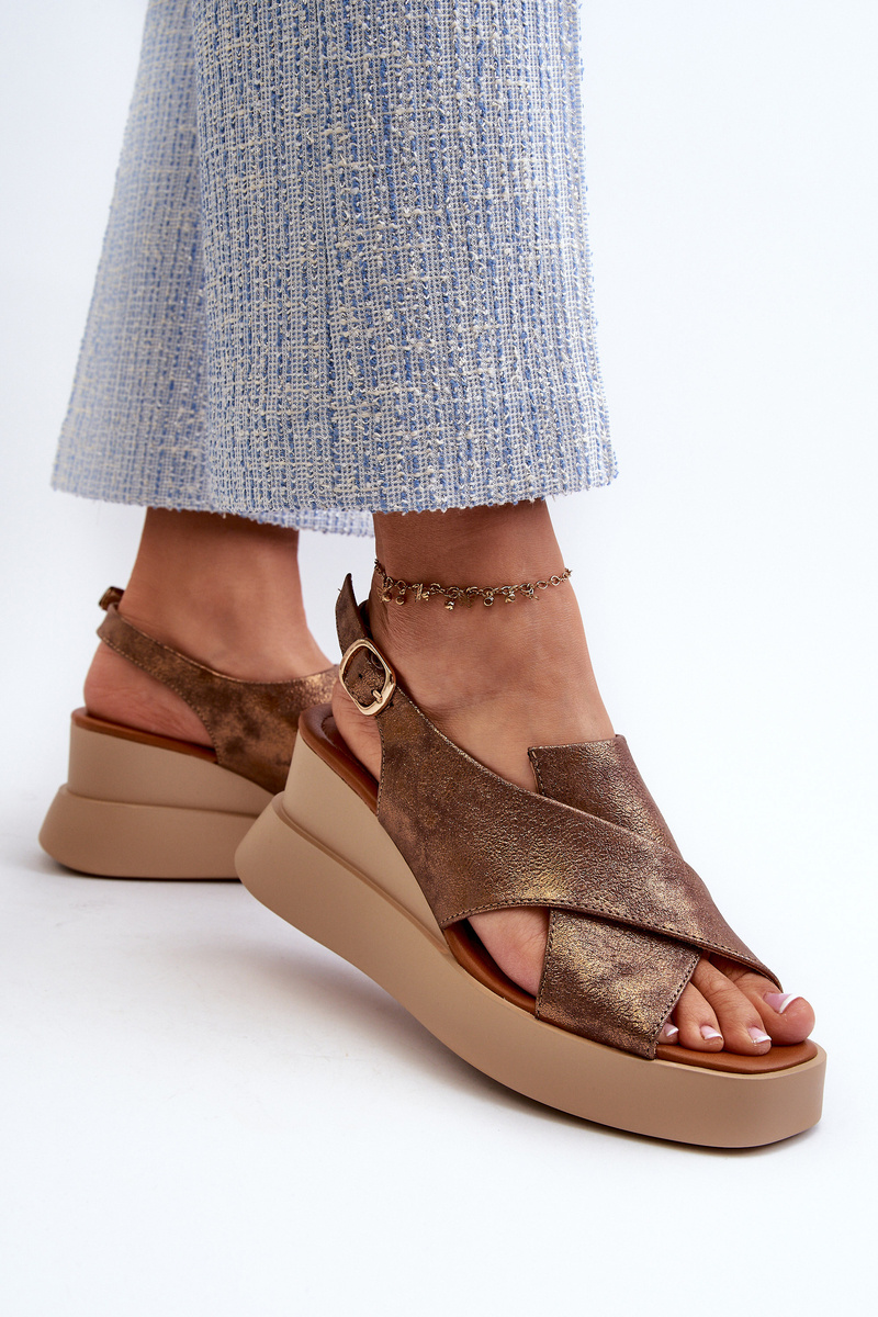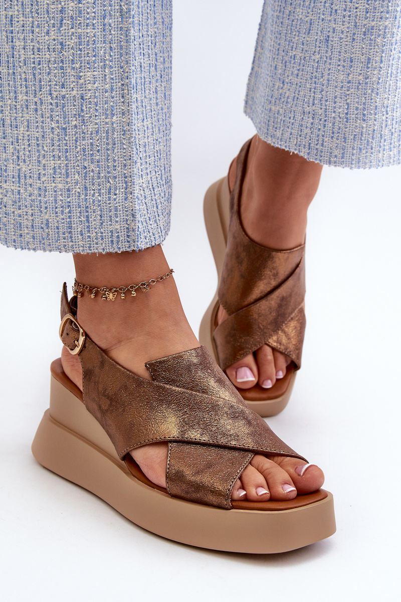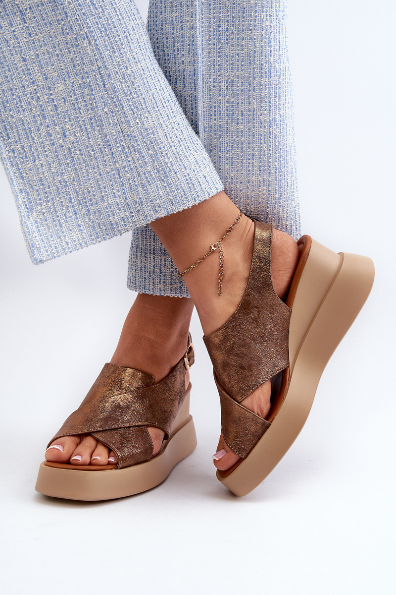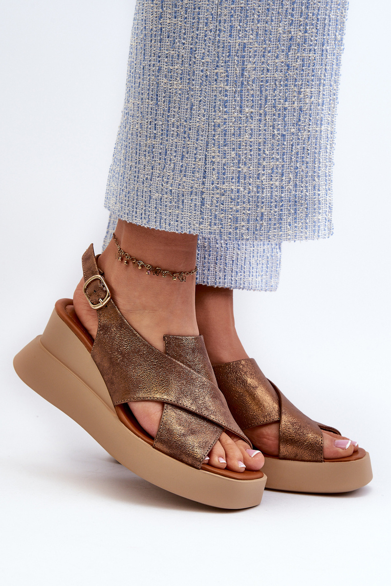 Dámské sandály z eko kůže na platformě a klíně měděné Vaiara