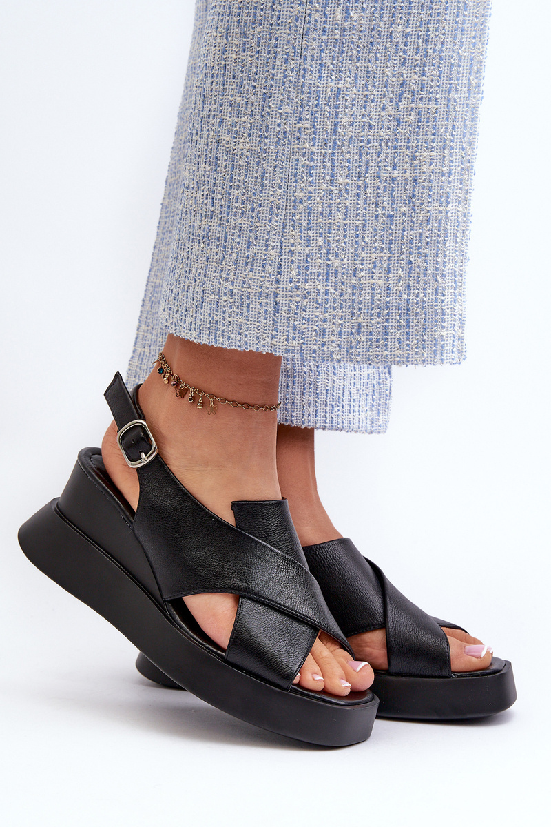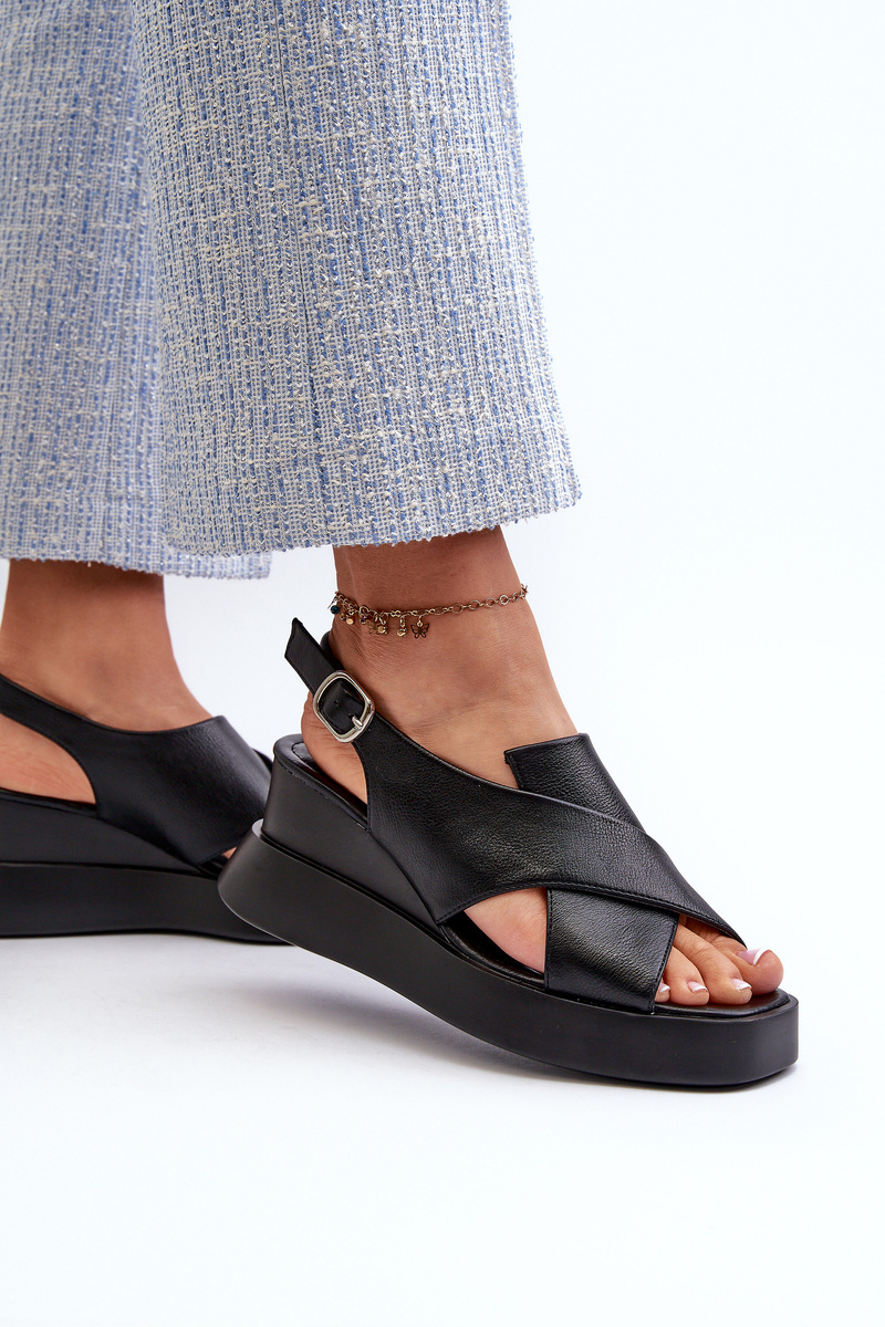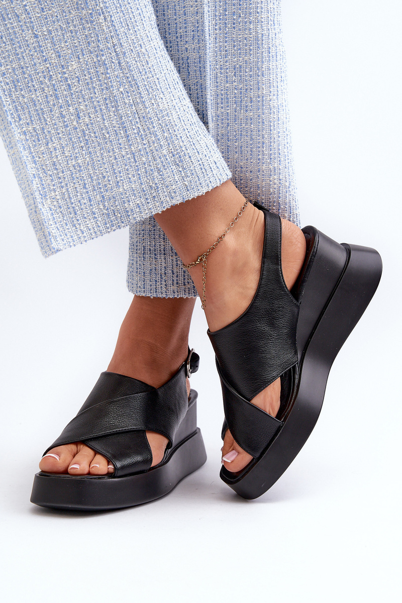 Dámské sandály z ekokože na platformě a klíně černé Vaiara
