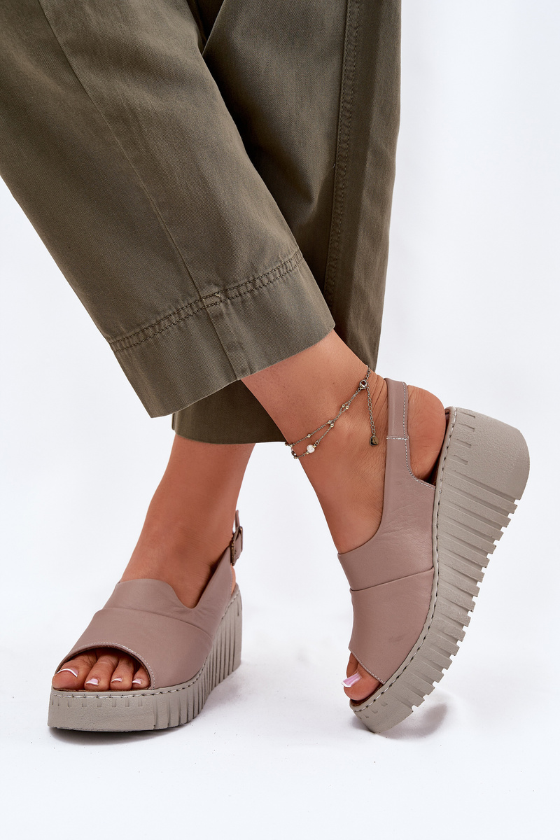 Dámské Sandály Z Přírodní Kůže Na Klínu Tmavě Béžové Artiker 54C0788