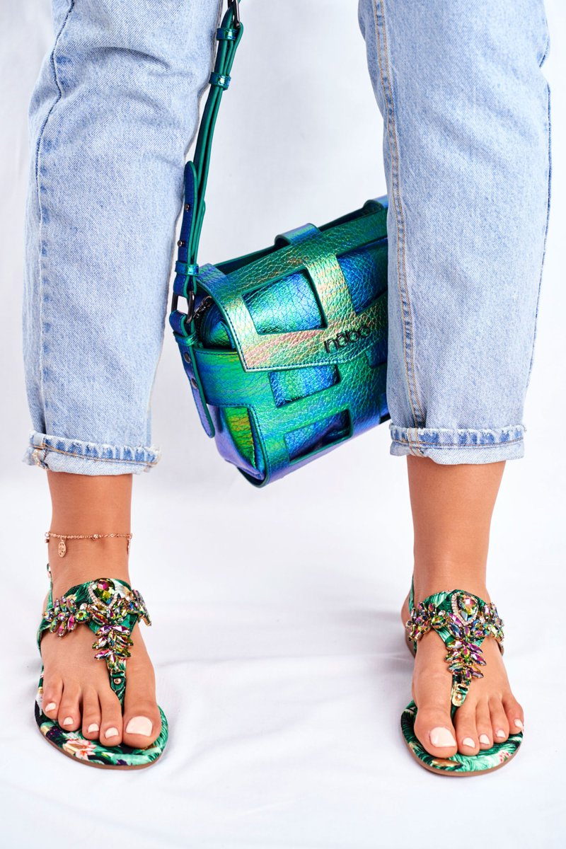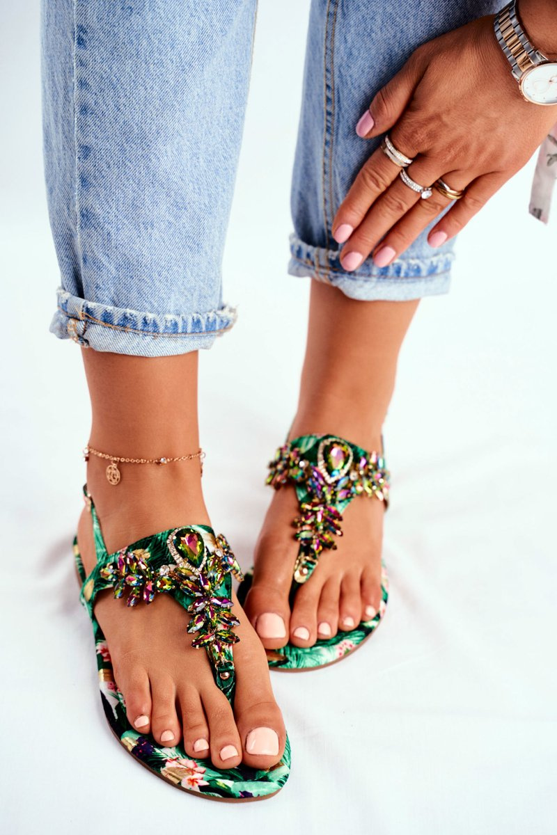 Dámské Sandály žabky S krystaly Zelené Under Control