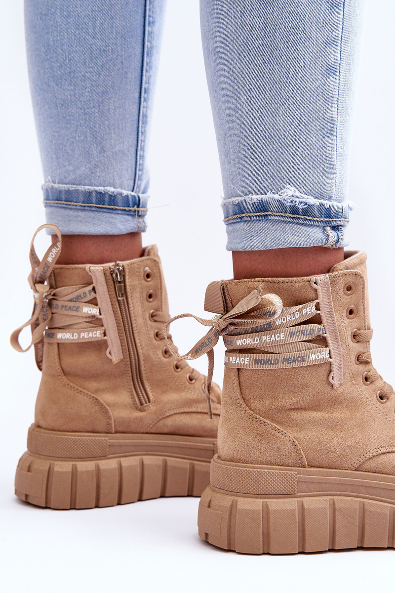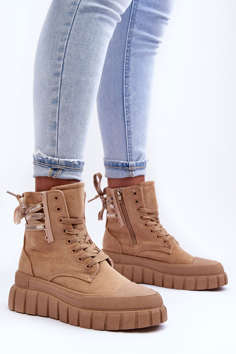 Módní dámské boty jsou umístěny na masivní platformě z gumového materiálu. Vyrobeno z ekologického semiše. Tento model je uzavřen na zip po straně přední části a ještě je šněrován. Špička je zaoblená. Textilní vložka zajistí pohodlí a pohodlí. Musíte je mít ve svém šatníku. Při výběru velikosti se řiďte tabulkou velikostí.