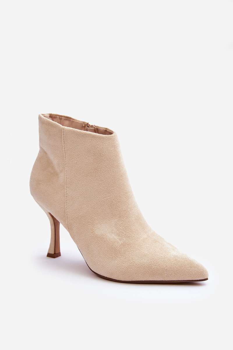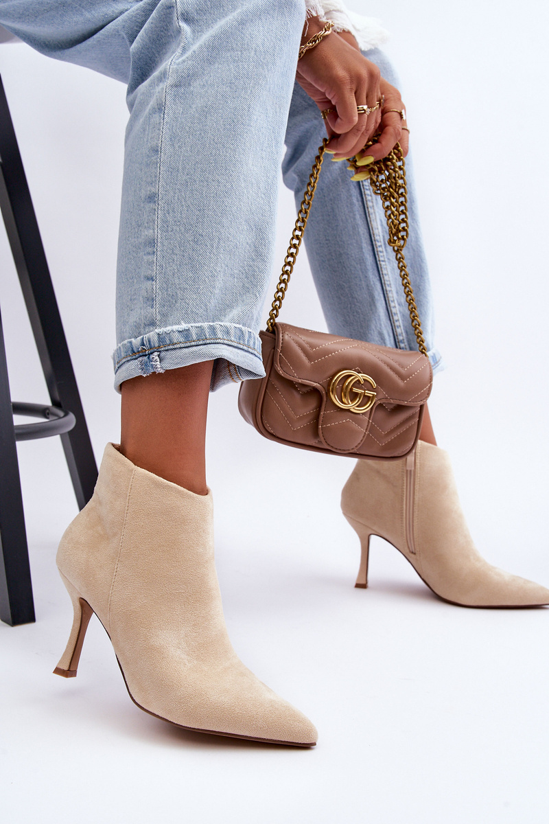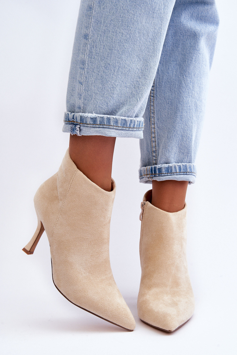 Dámské semišové botky na podpatku světle béžové Merisa