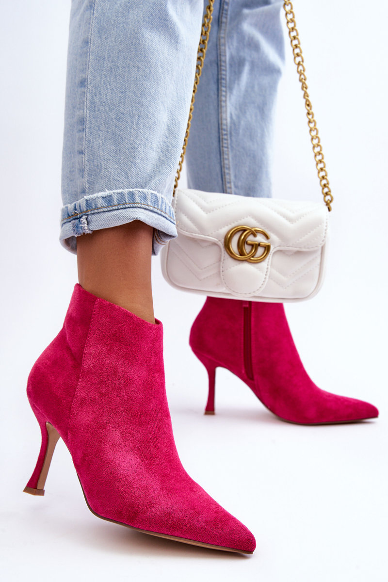 Elegantní dámské boty byly vyrobeny z ekologického semiše. Model na podpatku ve tvaru špice se skvěle zužuje na špičce. Boty jsou uzavřeny na boku zipem. Špička v těchto botách je zpevněna. Tento model bude skvěle fungovat ve více stylizacích, například do šatů, sukní nebo kalhot. Tyto boty musí být nutně ve vašem šatníku! Při výběru velikosti se řiďte tabulkou velikostí.