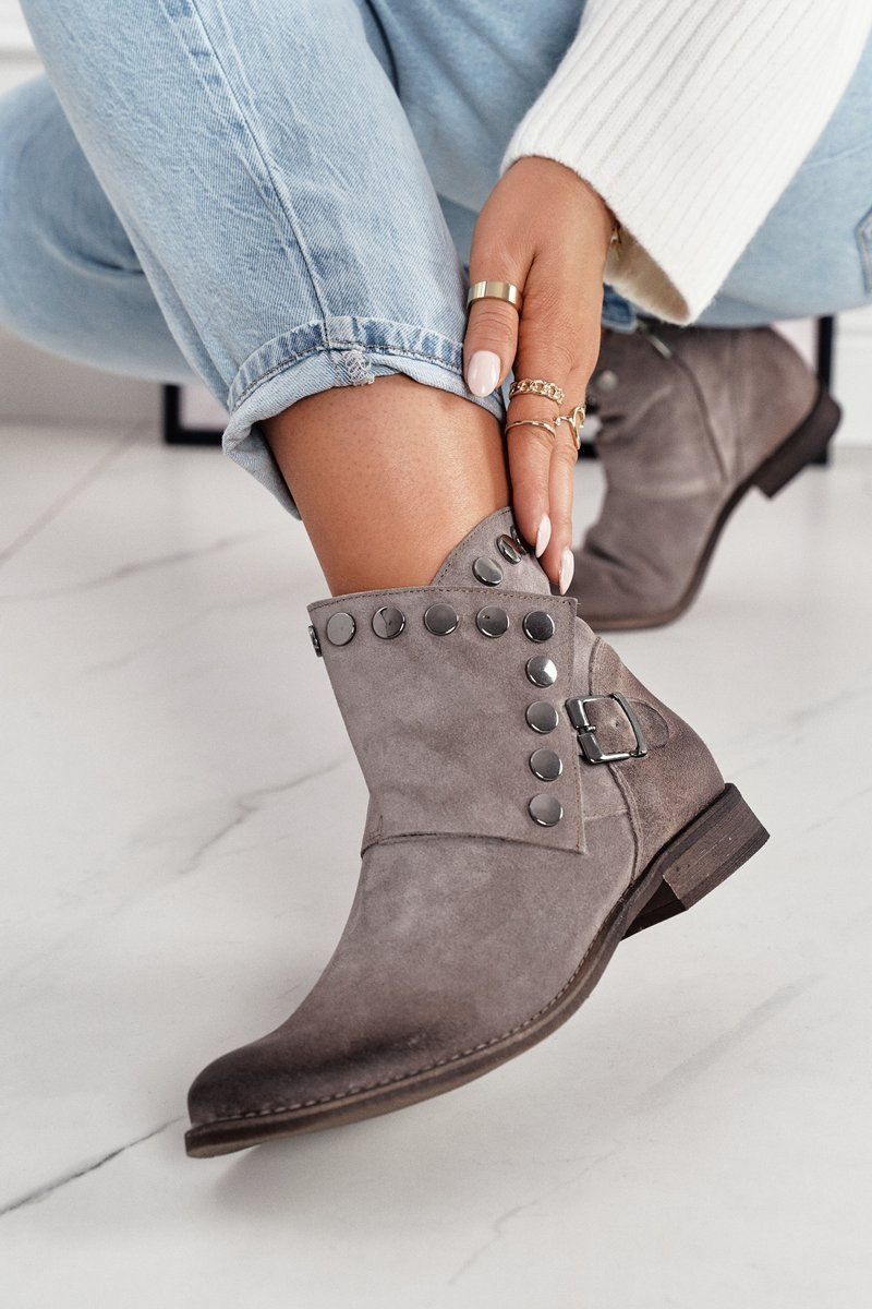 Dámské Semišové Boty Se Sponou Exquisite 1198 Kapučíno