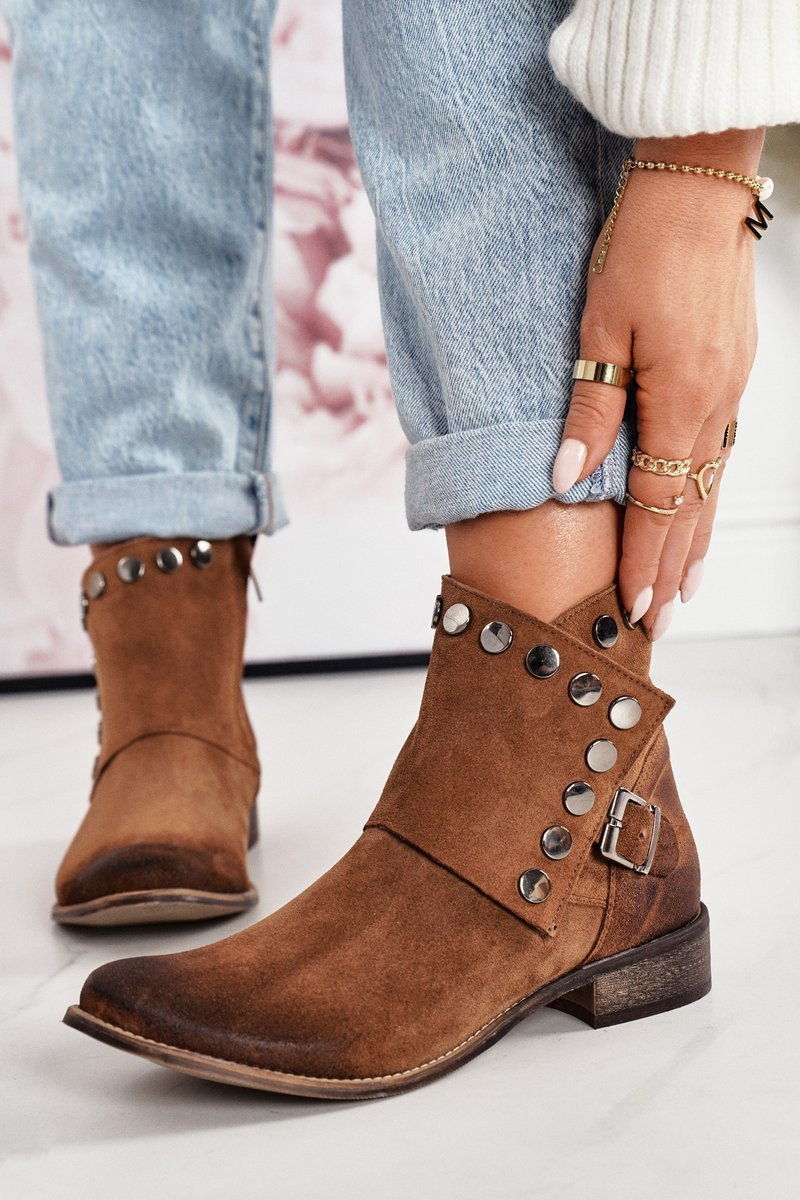 Dámské Semišové Boty Se Sponou Exquisite 1198 Koňak