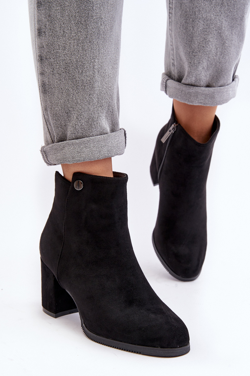 Dámské semišové kotníčkové boty na podpatku černé Selela