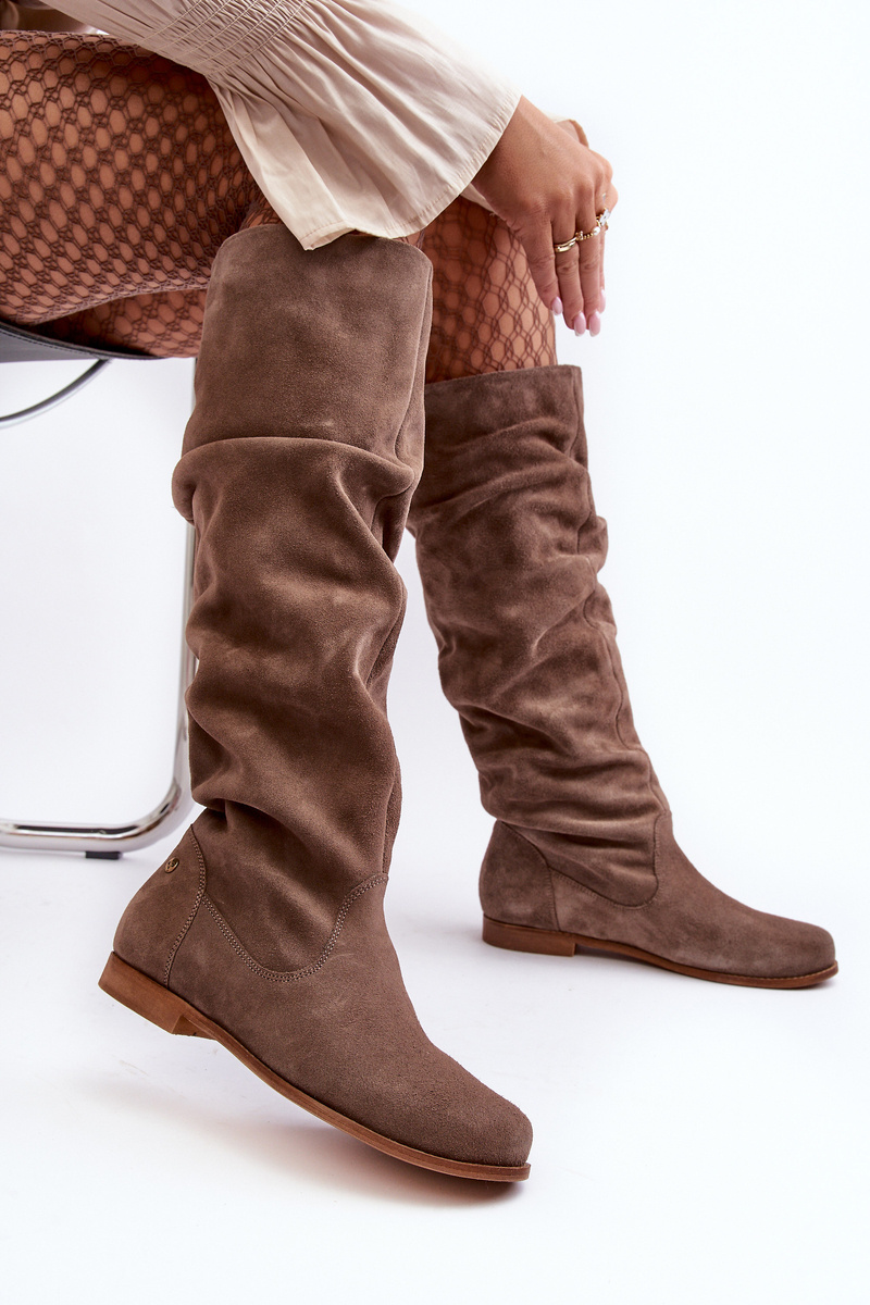 Klasické dámské kozačky jsou vyrobeny z přírodní kůže s důrazem na detail. Svršek má navíc volány. Tento model je zatahovací. Boty byly umístěny na plochém podpatku. Nemají izolaci. Pata je vyztužená. Stélka je měkká a zateplená, což zvyšuje komfort používání. Při výběru velikosti se řiďte tabulkou velikostí.