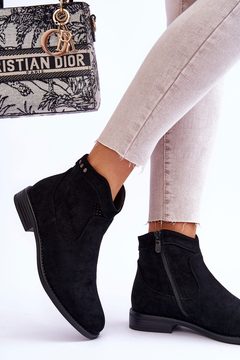 Dámské semišové kozačky na plochém podpatku černe Liana