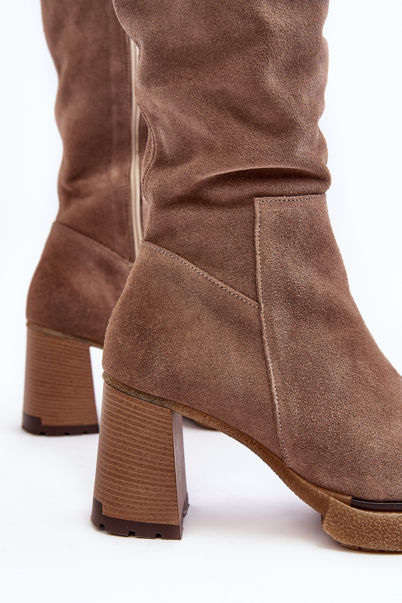 Dámské semišové kozačky na podpatku před koleno hnědé Lemar Ceraxa
