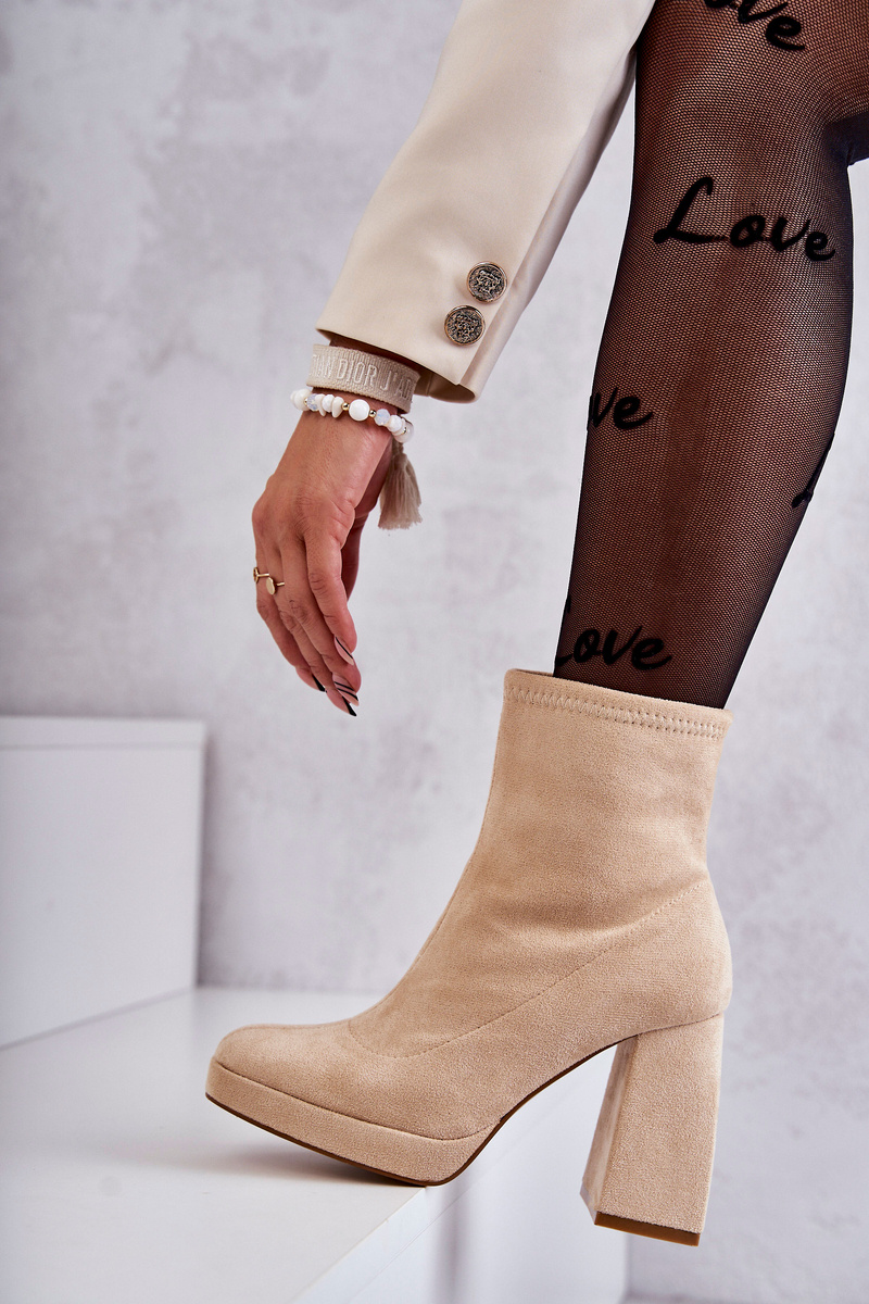 Dámské semišové kozačky na vysokém podpatku Světle béžová Ramira