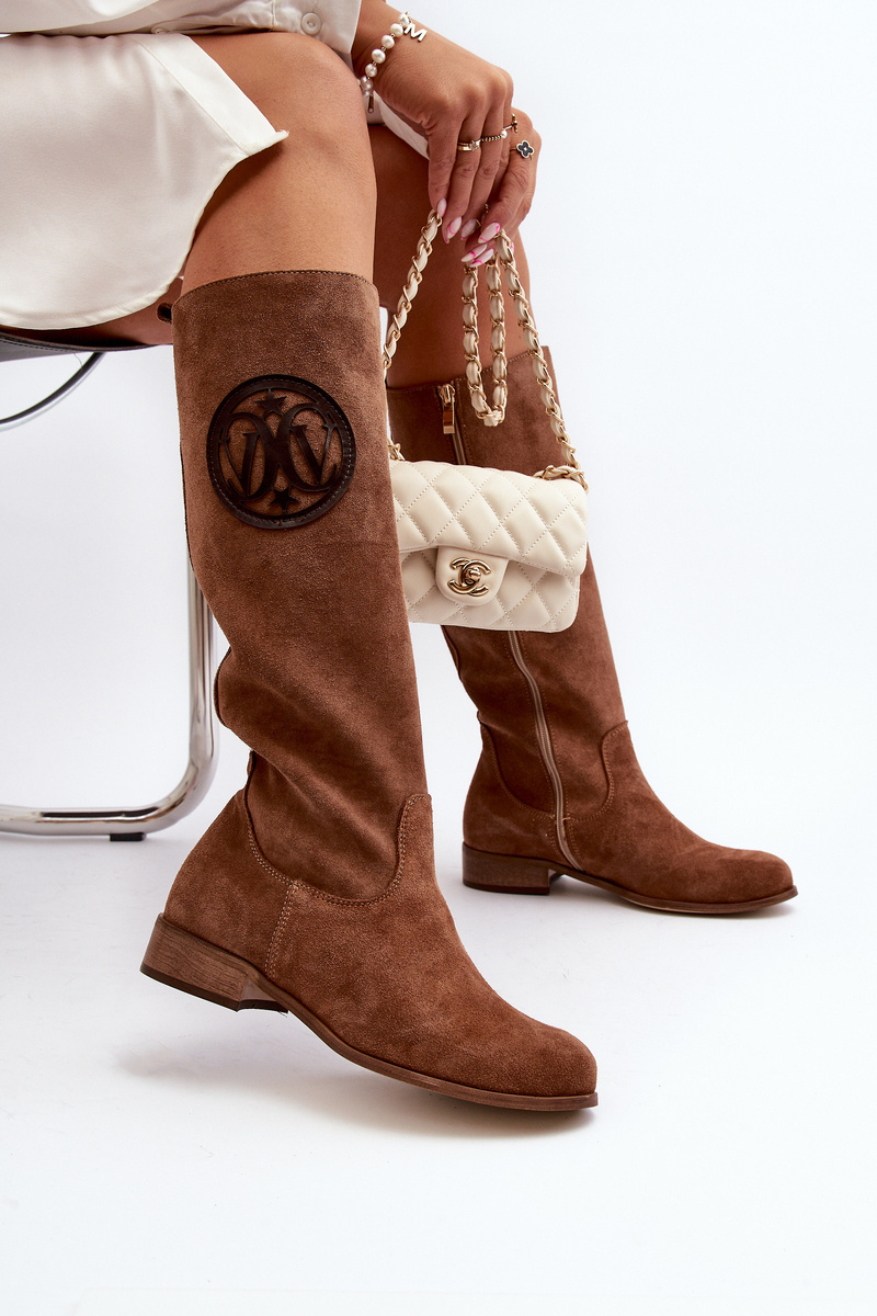 Dámské semišové kozačky před koleno hnědé Zazoo 3367/2
