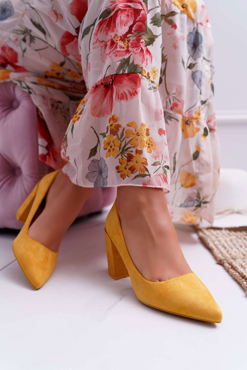 Dámské Semišové Lodičky Na Podpatku žluté Neshka