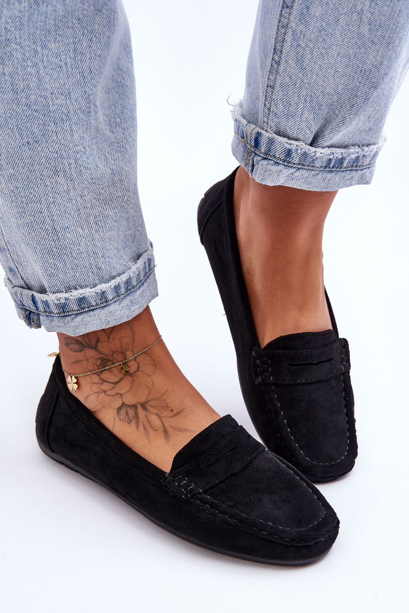 Klasické dámské mokasíny jsou vyrobeny z jemného eko semiše. Tento model má na přední straně dekorativní pásek. Mokasíny jsou osazeny na protiskluzové podrážce. Měkká vložka z eko kůže zajišťuje pohodlí při nošení obuvi. Navíc je jemně perforovaná. Tento model by měl být právě ten váš! Při výběru velikosti se řiďte tabulkou velikostí.