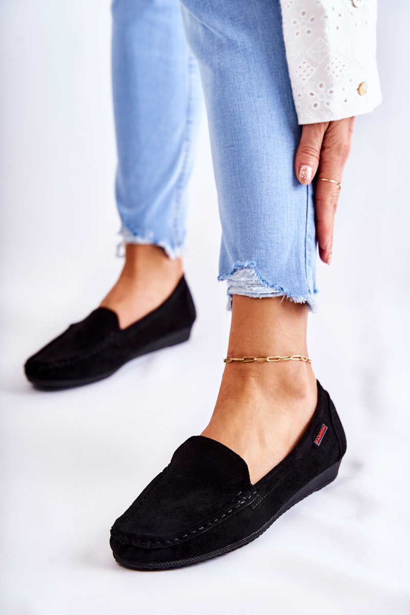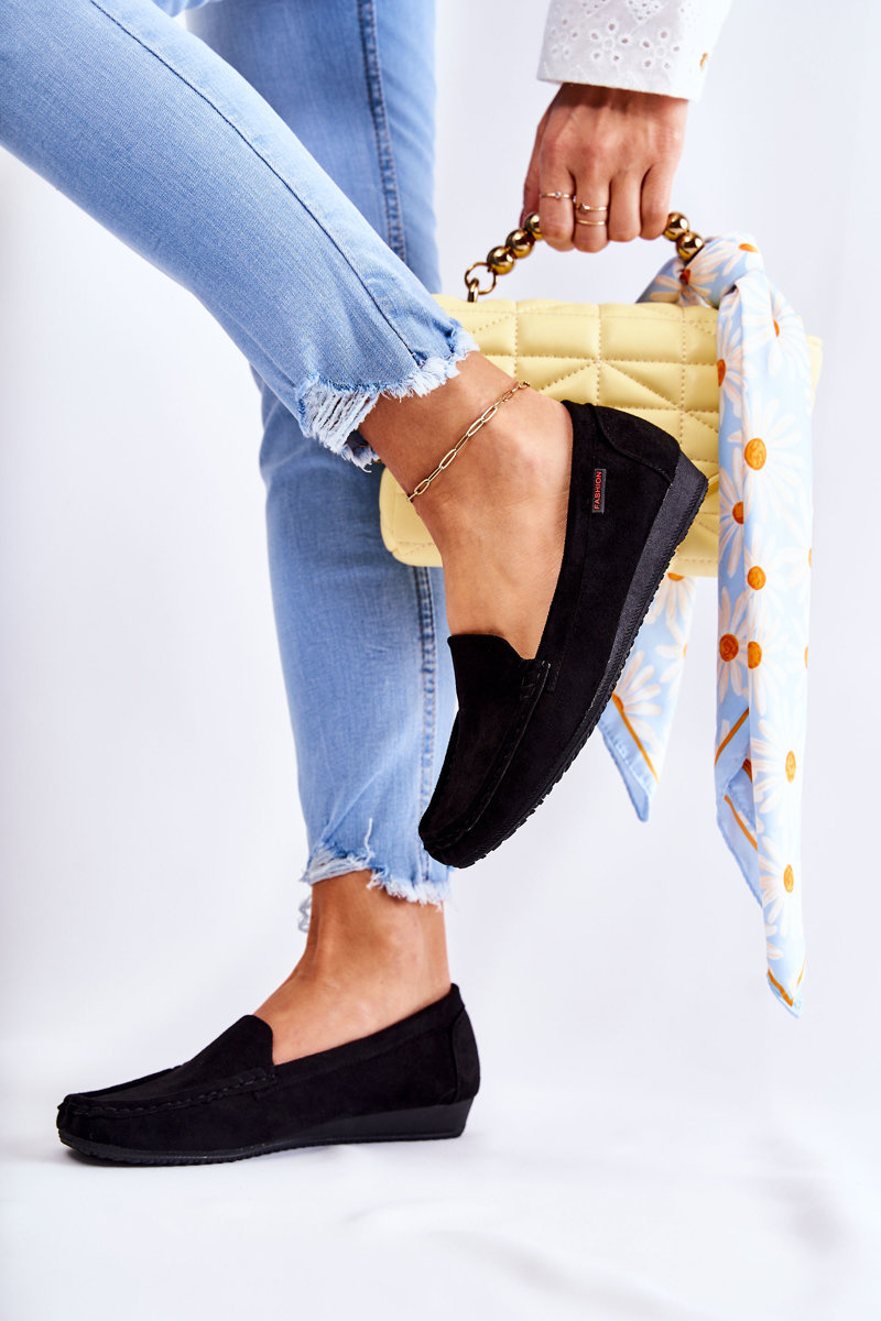 Velmi pohodlné dámské mokasíny. Boty jsou vyrobeny z měkkého eko semiše. Pohodlí při používání zajistí stélka z přírodní kůže s jemnou perforací. Mokasíny doplní mnoho vašich stylizací. Čtvercový nos. Jsou umístěny na jemném klínovém podpatku a gumové podrážce, která je navíc protiskluzová. Klasický, nazouvací model. Při výběru velikosti použijte tabulku velikostí.