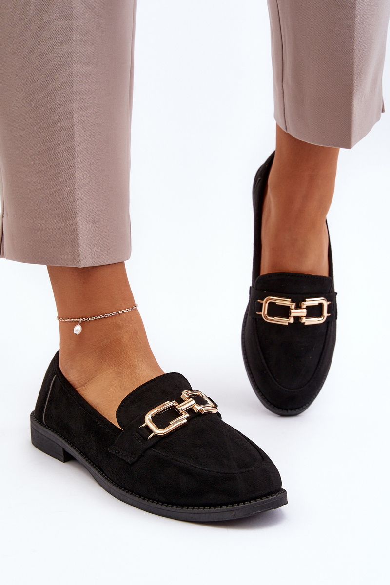 Dámské semišové mokasíny na ploché podrážce černé Misal