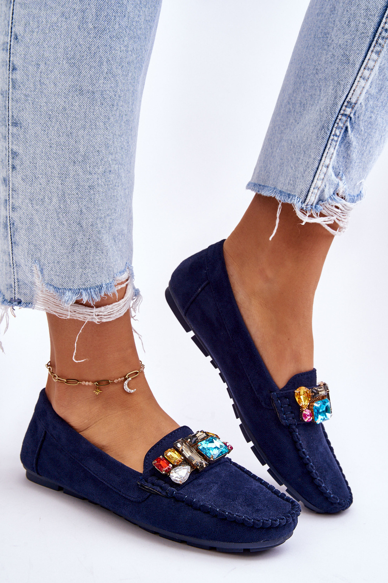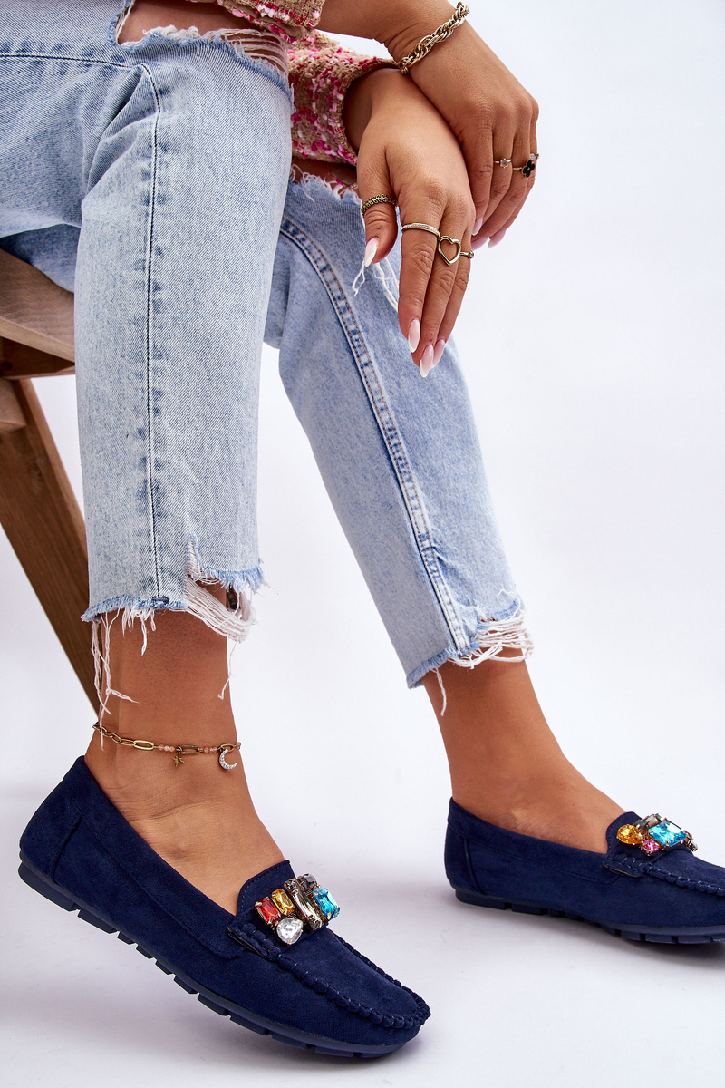Dámské semišové mokasíny s krystaly námořnická modrá Lucille
