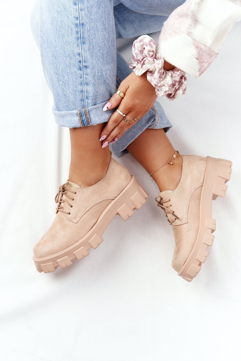 Dámské Semišové Panofle Oxfordky Na Platformě Nude Imogen