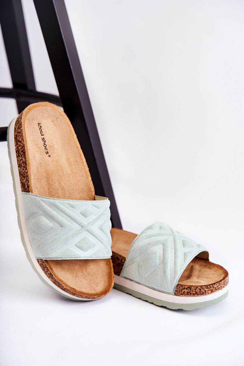 Módní dámské pantofle vyrobené z eko semiše příjemného na dotek. Model je osazen na masivní korkové platformě s plastovou podrážkou. Stélka je profilovaná a také vyrobena z eko semiše, což zajistí pohodlí při používání. Model s otevřenou špičkou. Skvělý design pro horké dny, který byste neměli mít ve svém šatníku! Při výběru velikosti použijte tabulku velikostí.