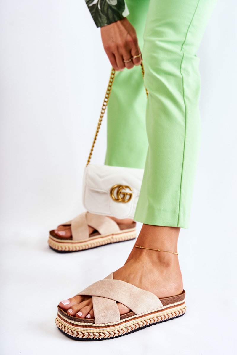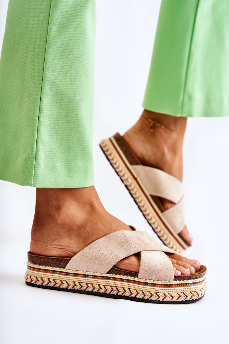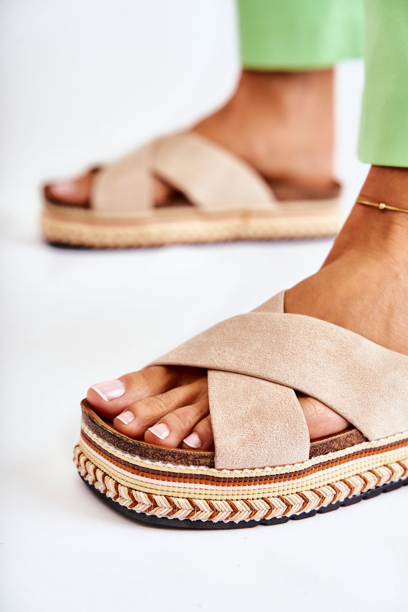 Klasické dámské pantofle jsou vyrobeny z eko semiše. Záložky na klopách se vpředu kříží. Stélka je vyrobena z eko kůže. Pantofle na platformě zdobené prýmkem a plastovými prvky. Model s otevřenou hranatou špičkou. Profilovaná stélka zajistí pohodlí při používání. Určitě se podívejte i na další modely dámských pantoflí! Při výběru velikosti použijte tabulku velikostí.