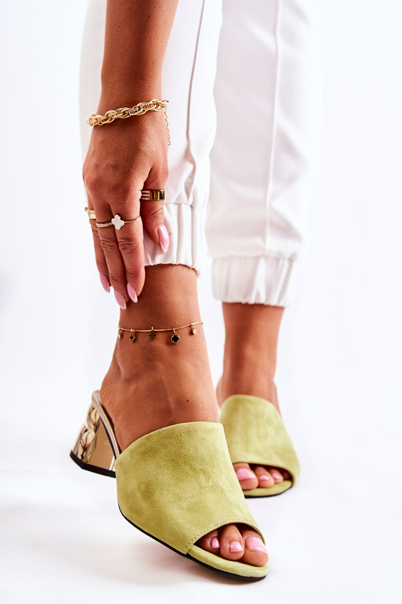 Módní a pohodlné dámské pantofle jsou upevněny na patách ve formě bloku. Svršek je vyroben z přírodního semiše. Nos je otevřený, zaoblený. Měkká stélka je vyrobena z přírodní kůže. Klasický, nazouvací model. Jsou ideální pro mnoho stylů. Dokonale se přizpůsobí šířce nohou díky kožené podšívce. Udělejte si radost nákupem nových bot, které se budou skvěle hodit na letní dny! Při výběru velikosti použijte tabulku velikostí.