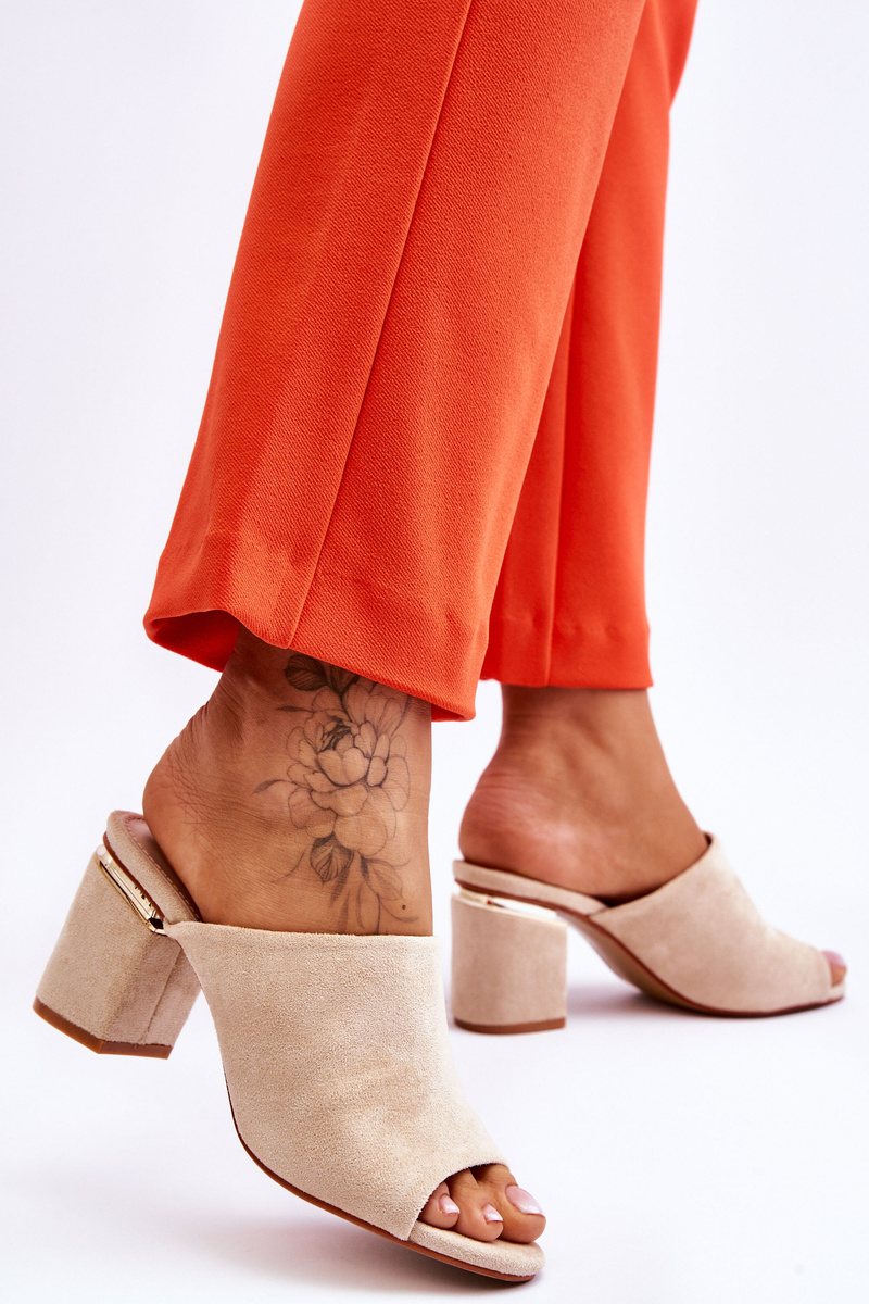Dámské semišové pantofle na vysokém podpatku Béžové Carter