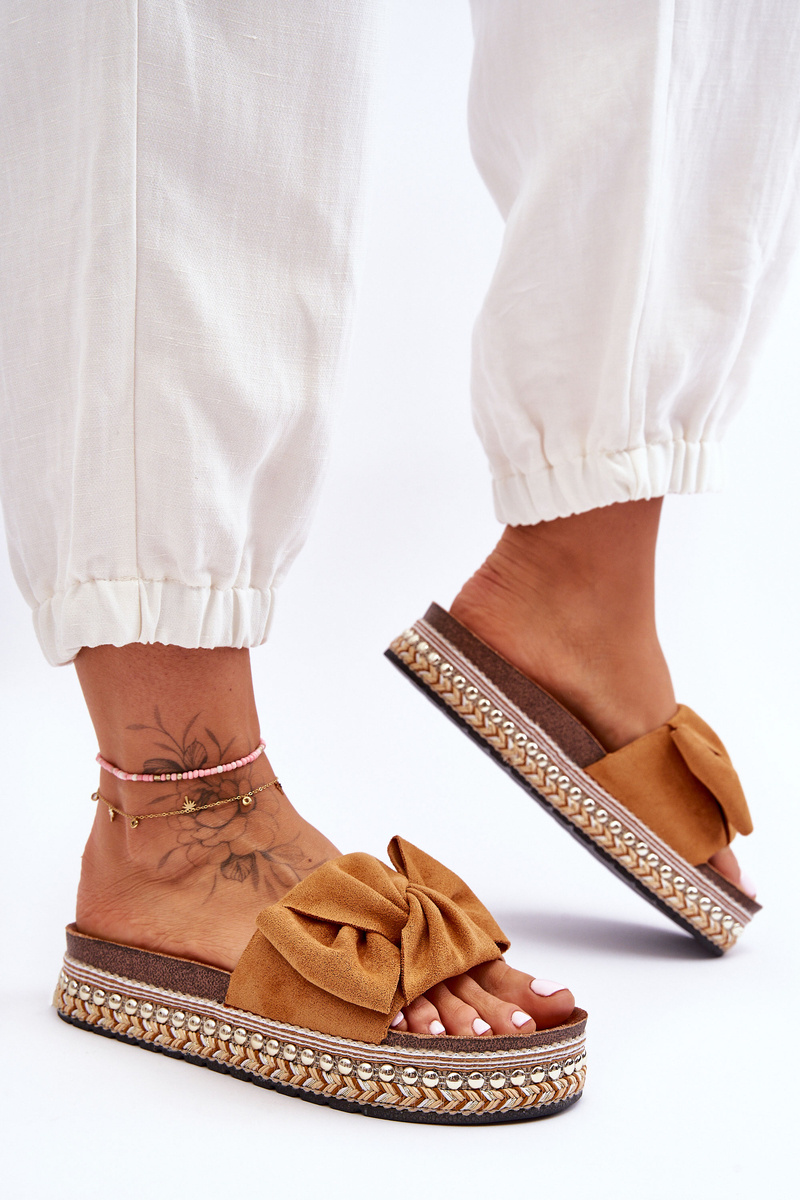Dámské semišové pantofle s mašlí Camel Lauria