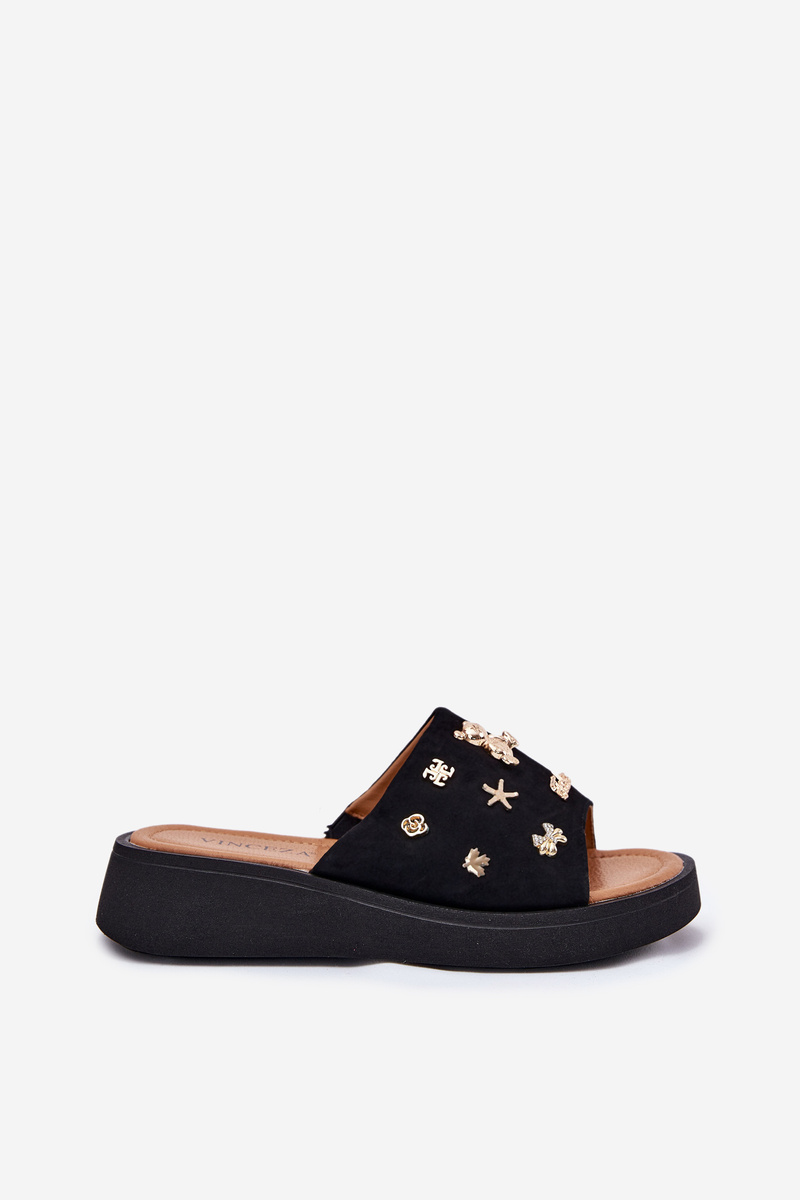 Dámské Semišové Pantofle S Připínáky Černé Vinceza 66741