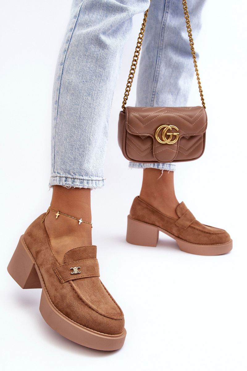 Dámské semišové polobotky na podpatku tmavě hnědé Afnir