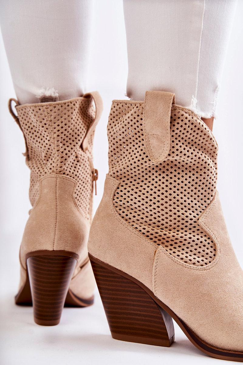 Dámské semišové prolamované boty Cowboy Béžove Eleonore