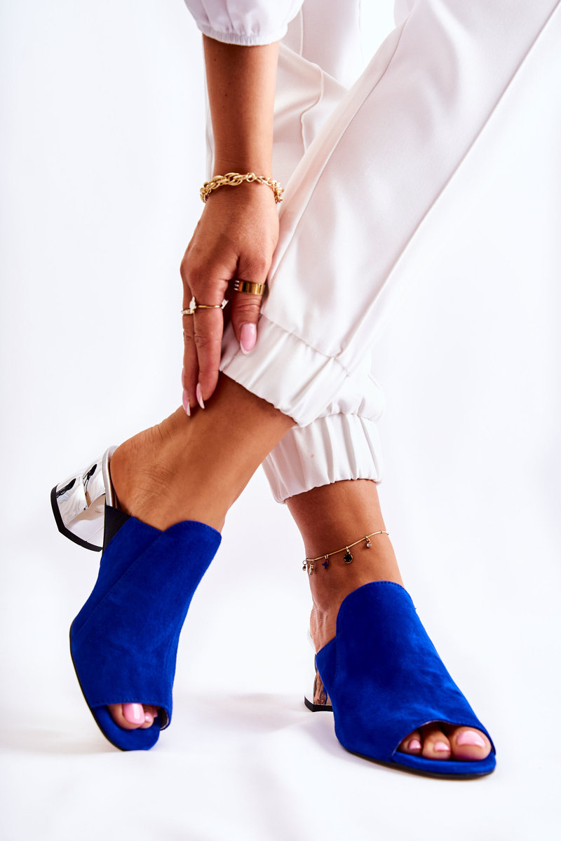 Klasické dámské pantofle jsou nasazeny na podpatku ve tvaru kvádru. Svršek je vyroben z přírodního semiše. Nos je otevřený, zaoblený. Měkká stélka z přírodní kůže. Klasický, nazouvací model. Jsou ideální pro mnoho stylů. Dokonale se přizpůsobí šířce nohou díky kožené podšívce. Při výběru velikosti použijte tabulku velikostí.