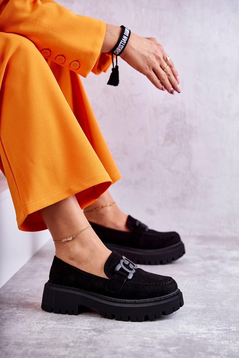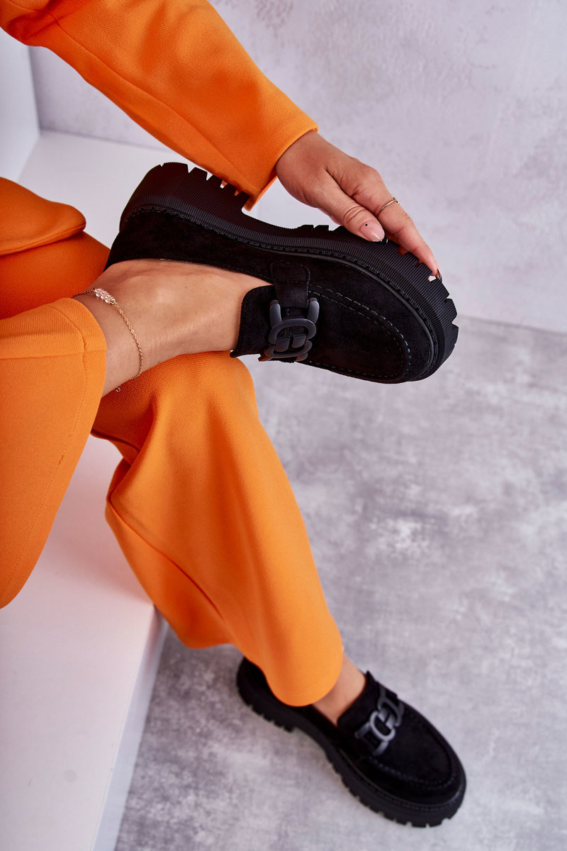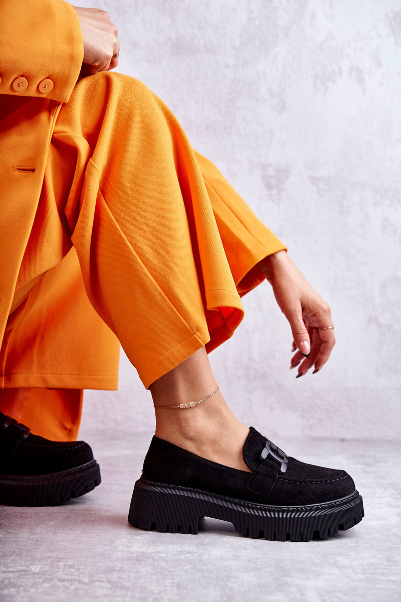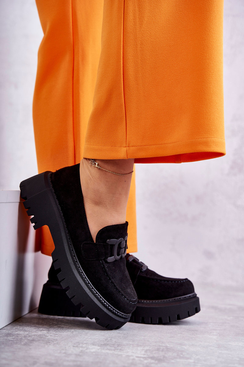 Dámské semišové semišové mokasíny se zdobením černe Leeza