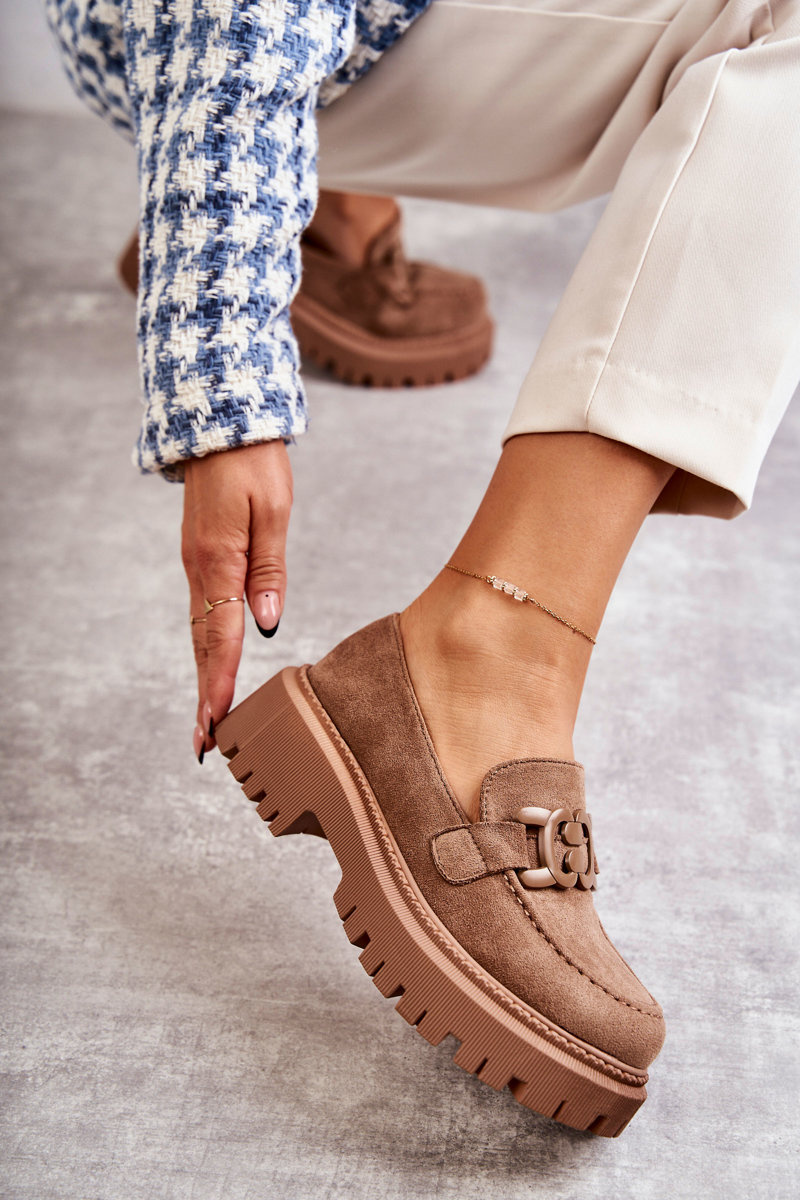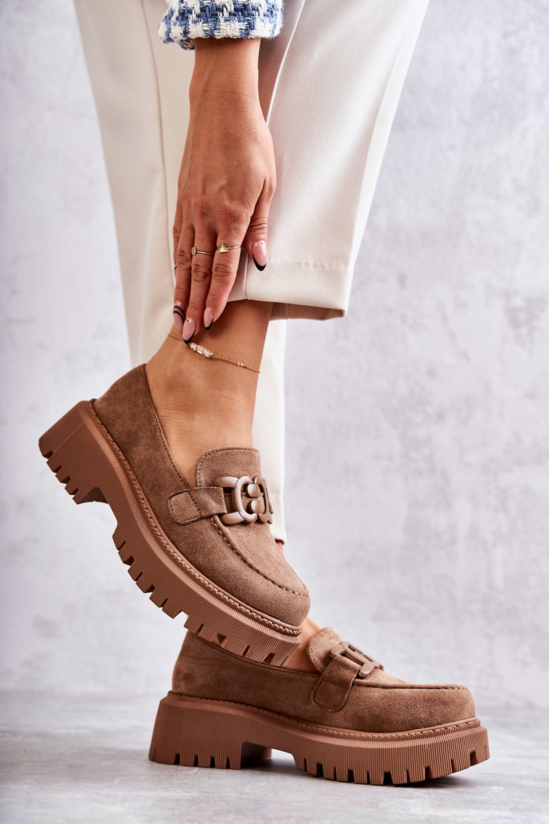Dámské semišové semišové mokasíny se zdobením Tmavě béžová Leeza