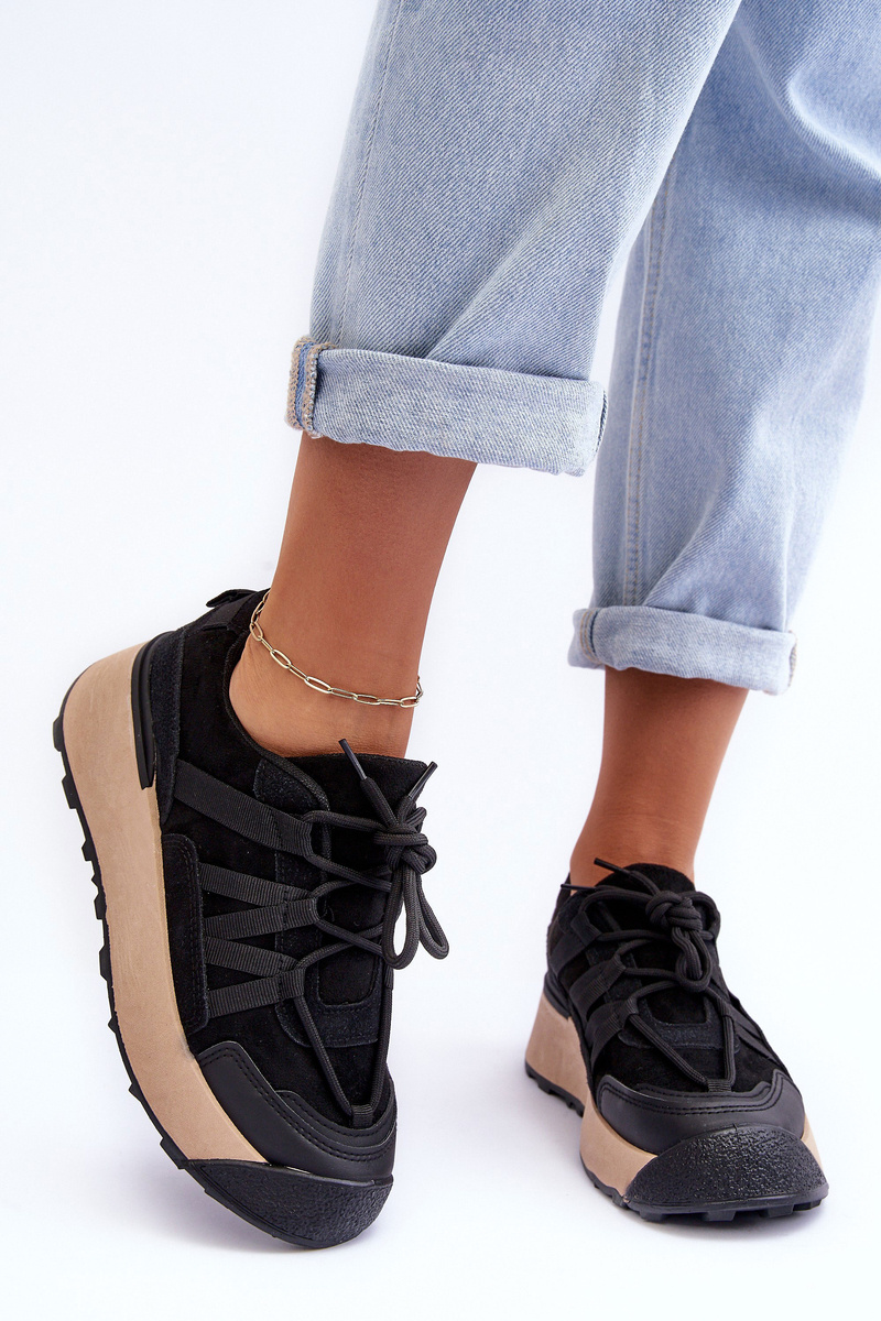 Dámská sportovní obuv vyrobená z ekologického semiše. Jsou umístěny na masivní platformě, která jemně zvedne vaši postavu. Tento model má klasické šněrování, které Vám umožní přizpůsobit obuv šířce nohy. Navíc je pata vyztužená a vložka u těchto bot je vyměnitelná. Při výběru velikosti se řiďte tabulkou velikostí.