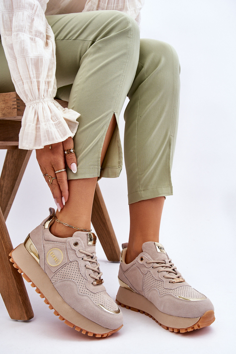 Dámské semišové sportovní boty na platformě GOE LL2N4001 Béžová