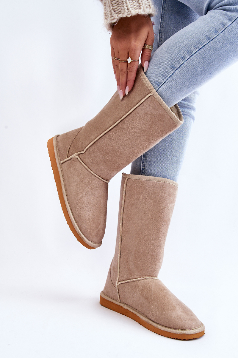 Dámské semišové vysoké boty do sněhu zateplené béžové Reyma