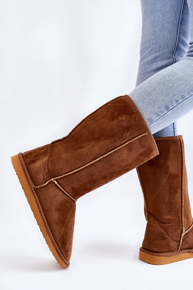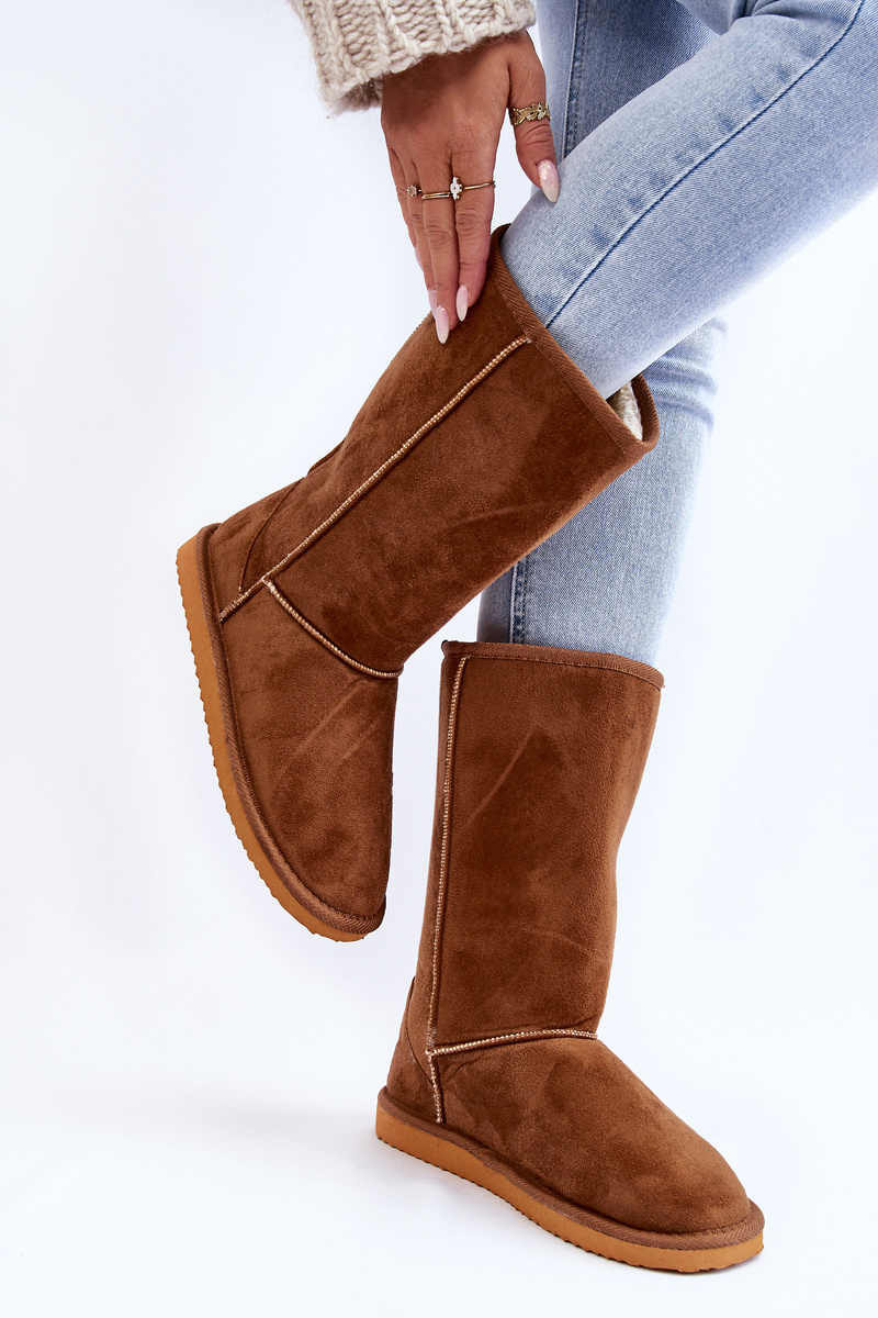 Dámské semišové vysoké boty do sněhu zateplené velbloud Reyma