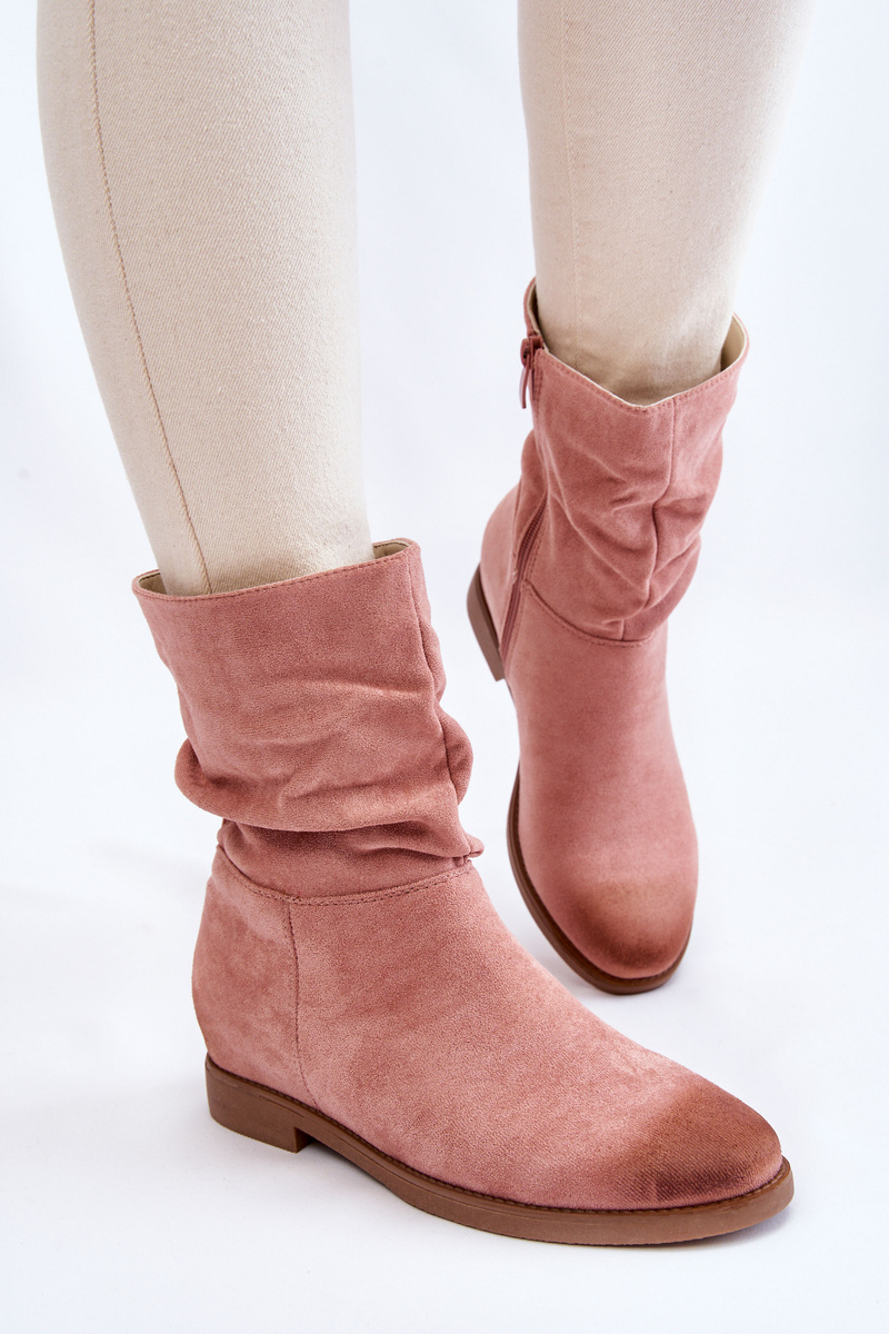 Dámské kozačky mají vysoký mírně nařasený svršek nad kotníkem. Zavírání na zip. Vyrobeno z ekologického semiše příjemného na dotek. Stélka je vyrobena z látky. Vyztužená pata. Na nose a zadní straně svršku jsou módní oděrky. Ideální na jarní a podzimní období. Tento model bude vypadat skvěle s džínami nebo splývavou sukní. Při výběru velikosti použijte tabulku velikostí.