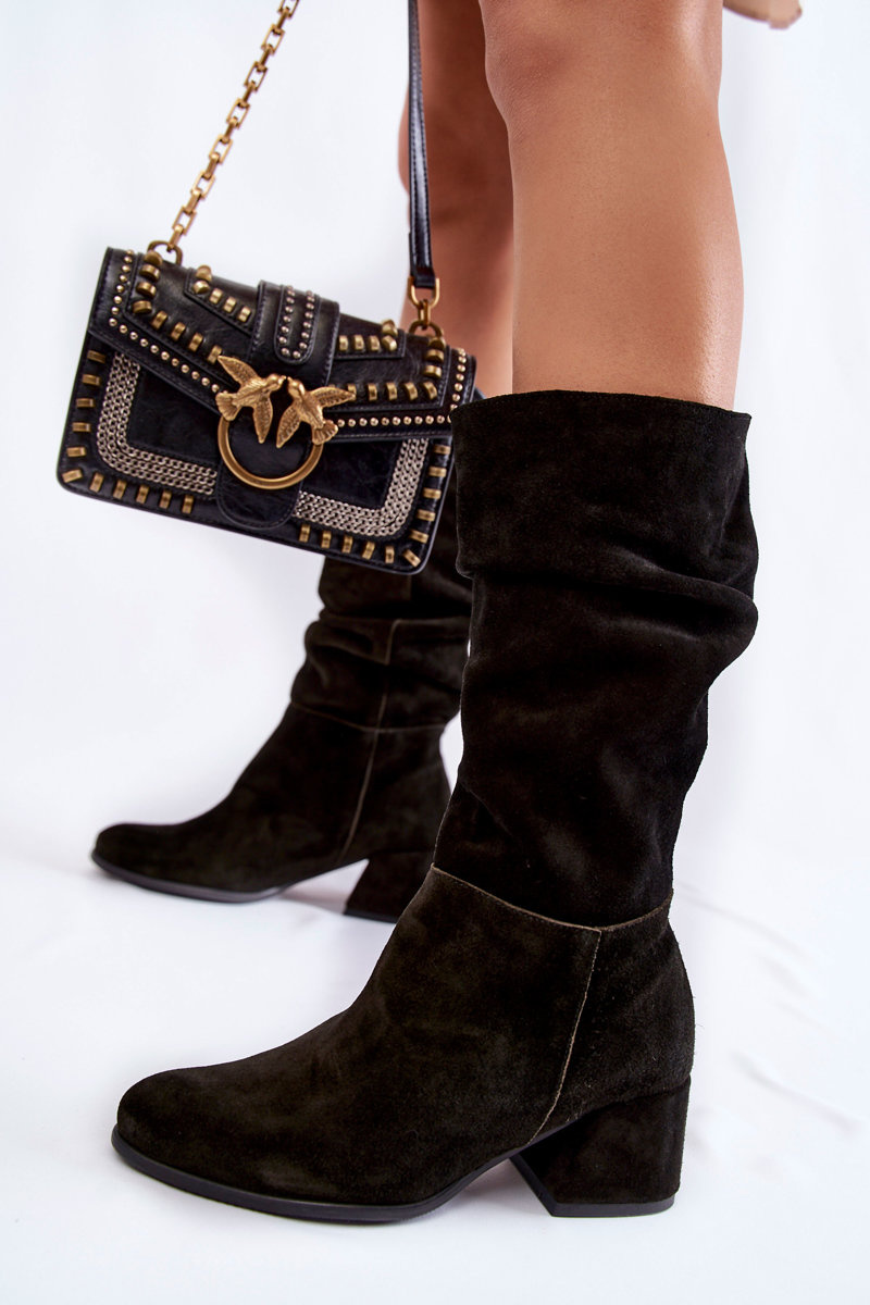 Dámské kozačky jsou vyrobeny z vysoce kvalitní přírodní kůže. Tento model je nazouvací. Kozačky jsou nasazeny na nízkém podpatku v podobě širšího sloupku. Nemají izolaci. Navíc je zesílená pata. Svršek zdobí jemné volánky. Tento model bude vypadat skvěle se sukněmi a krátkými šaty. Při výběru velikosti použijte tabulku velikostí.
