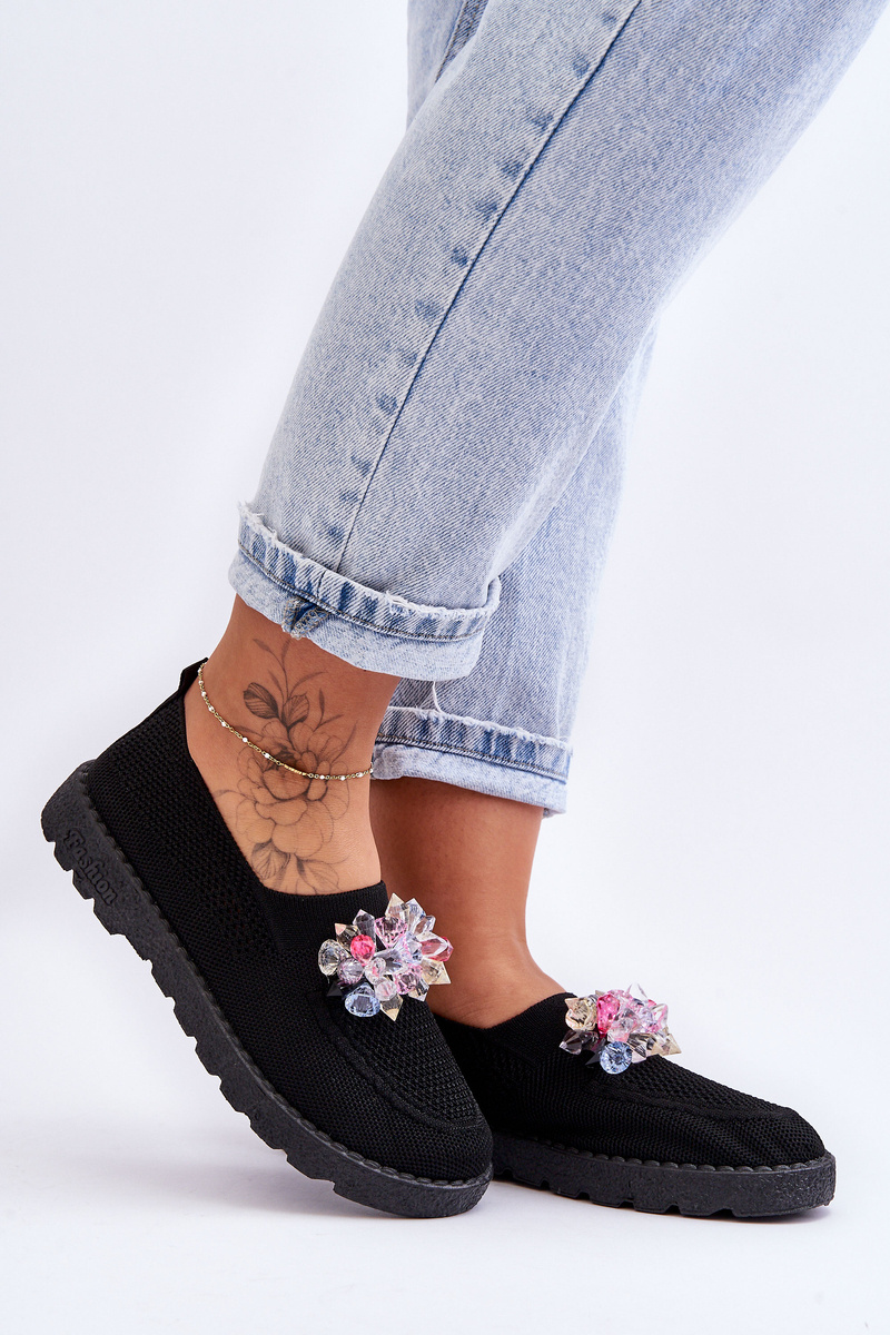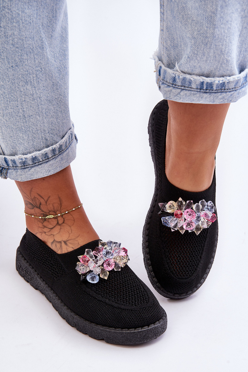 Dámské Slip-on Tenisky s Kameny Černá Simple