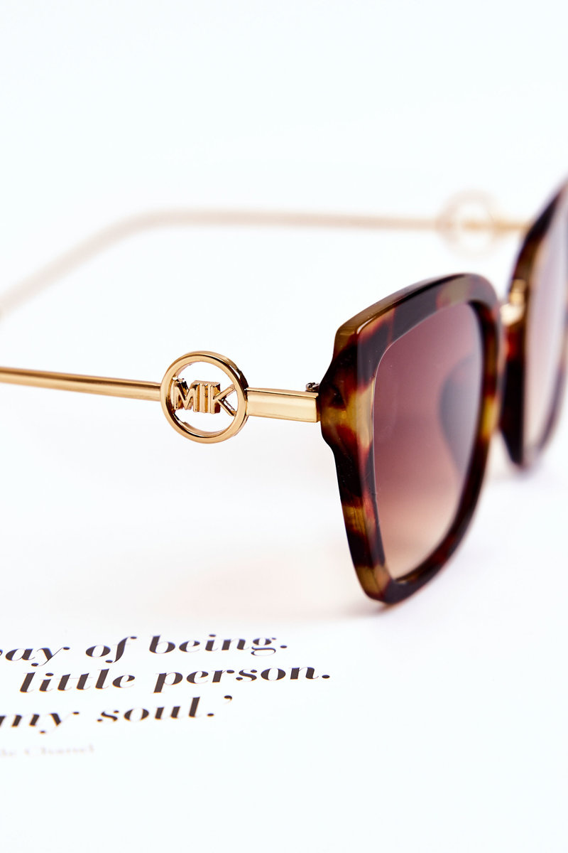 Jedinečné sluneční brýle budou perfektní pro mnoho situací! Nejen v letní sezóně, ale i v zimní sezóně, kdy se sluneční paprsky odrážejí od sněhu. Model ve tvaru kočičích očí. Vyrobeno z plastu a kovu. Čočky s jemnými obroučkami. Zlaté a tenké stranice s ozdobným logem. Informace od výrobce: brýle chrání před škodlivým UV zářením, kategorie 3.